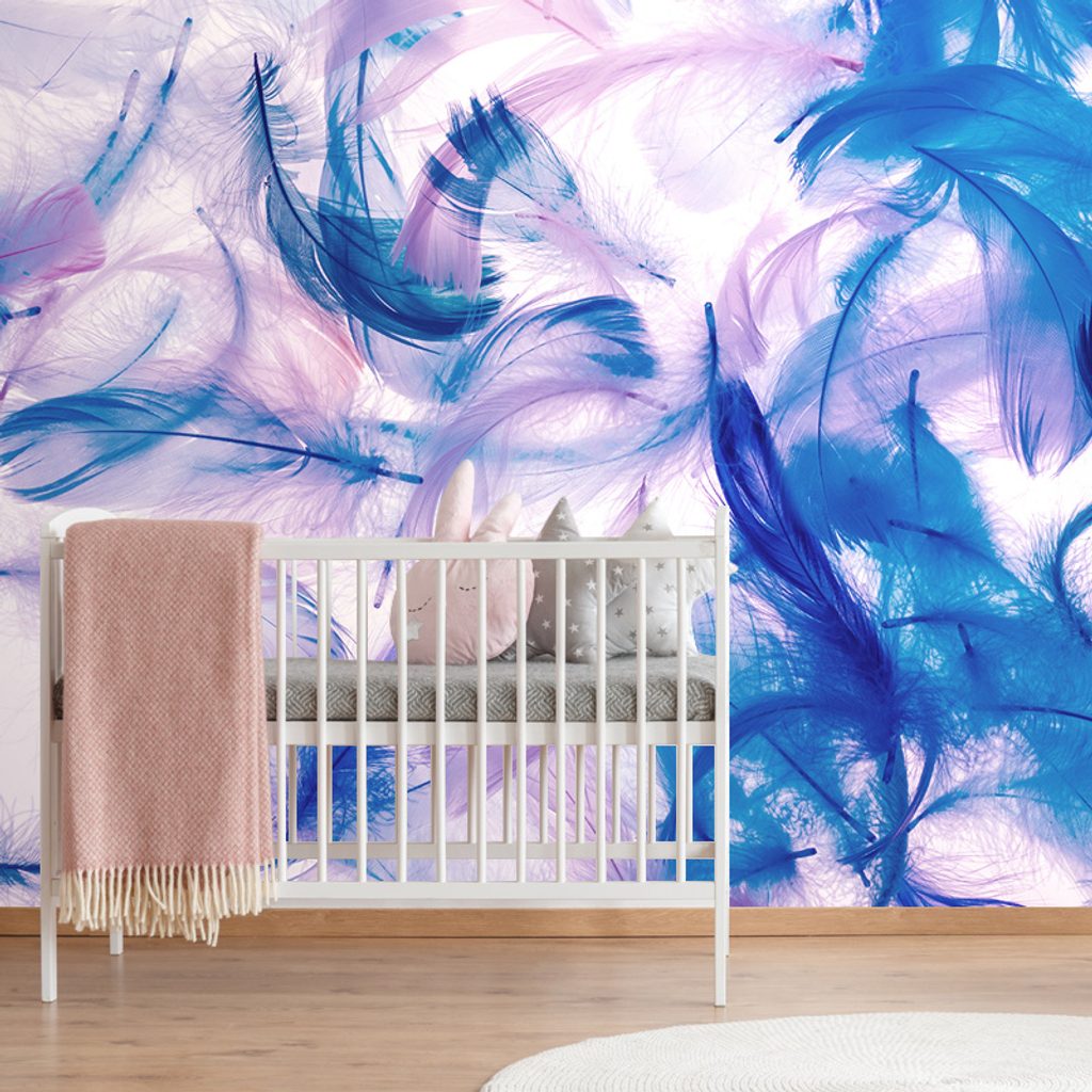 Nádherná samolepiaca tapeta modro-fialové pierka