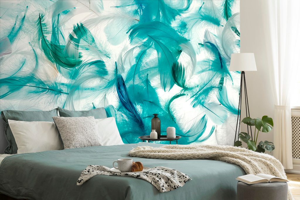 Nádherná samolepiaca tapeta pierka sfarbené do zelena