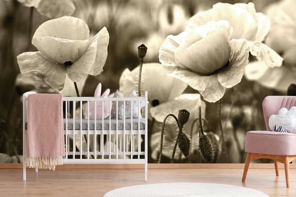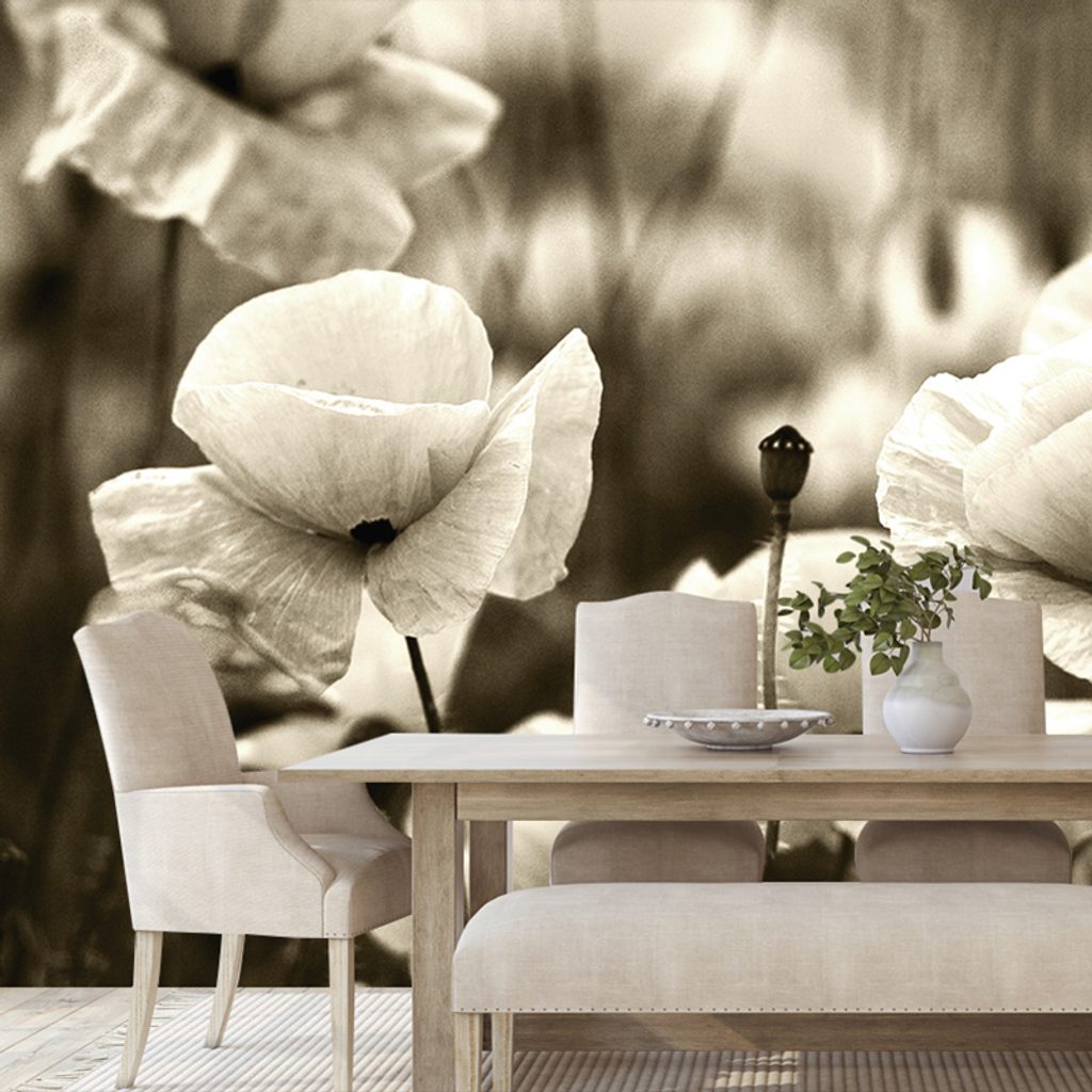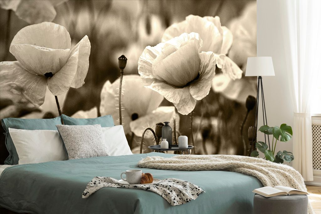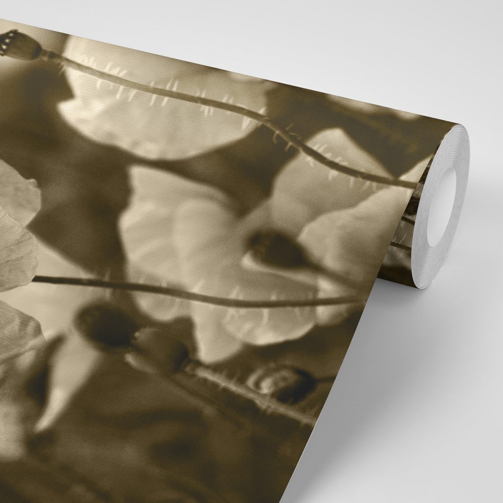 Nádherná sépiová samolepiaca fototapeta v objatí vlčích makov