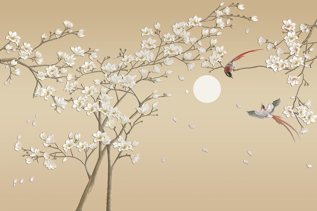 Nádherná tapeta konár stromu s vtáčikmi