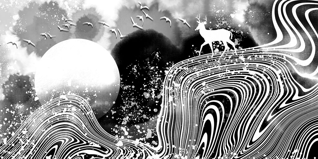 Obraz abstrakcia prírody v čiernobielom prevedení