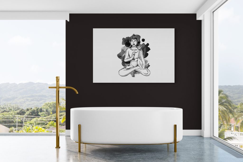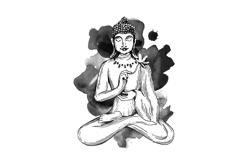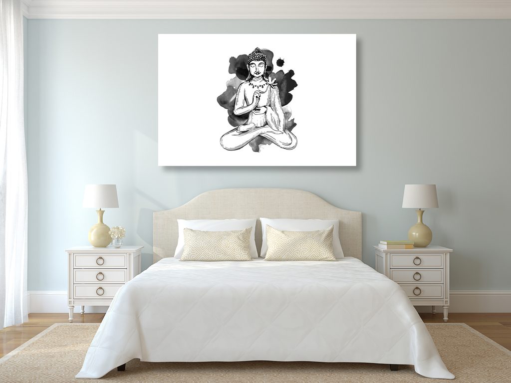 Obraz abstraktná ilustrácia Budhu v čiernobielom prevedení