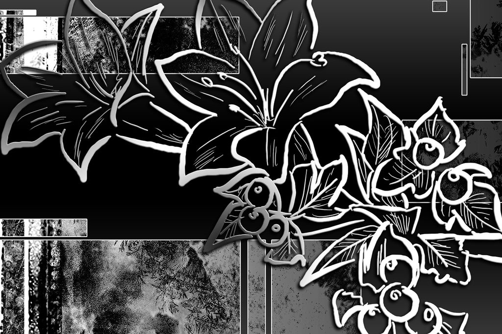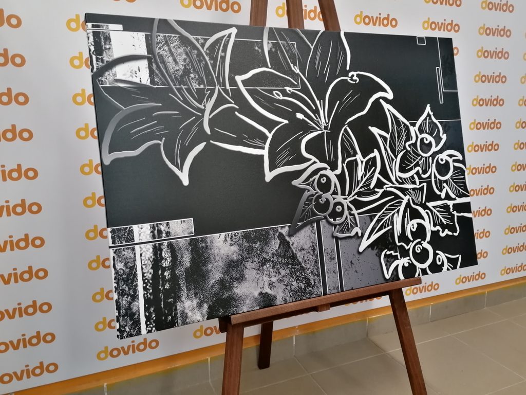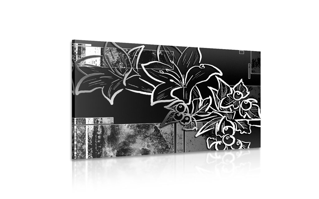 Obraz abstraktná kvetina v čiernobielom prevedení