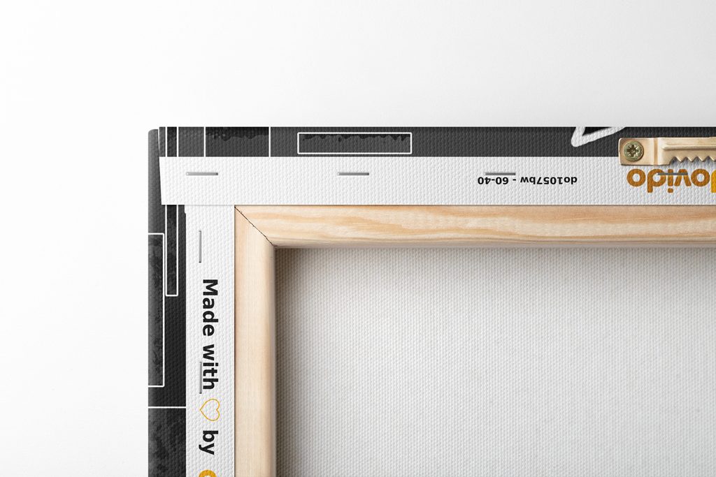 Keďže chceme, aby obraz na vašej stene vyzeral dokonalo, zameriavame sa na detaily. Preto je plátno dôkladne napnuté na rám, ktorý je z kvalitného dreva. Použitý rám je vyrábaný z rámarských líšt, ktoré sú vhodné na výrobu obrazov. Netreba zabudnúť ani na to, že na zadnej strane sú nahusto umiestnené spony. Spolu s obrazmi obdržíte 1 až 2 ks závesov, ktoré sú umiestené na zadnej strane, podľa toho, aký rozmer obrazu si zvolíte. Pre obrazy, ktorých šírka je nad 120 cm je na zosilnenie rámu vsadená drevená priečka.