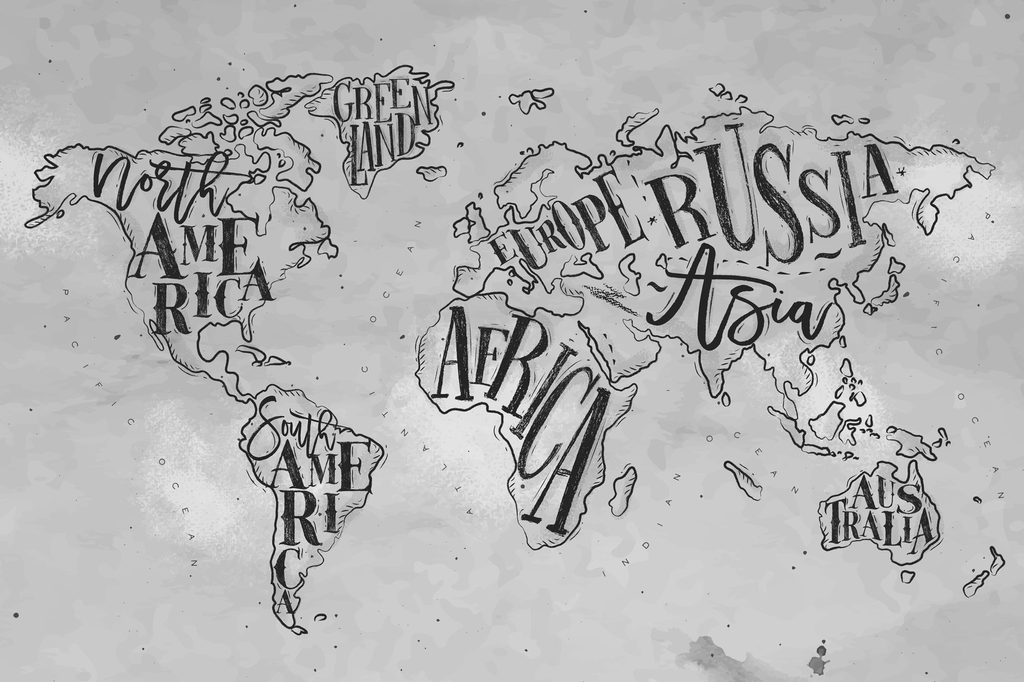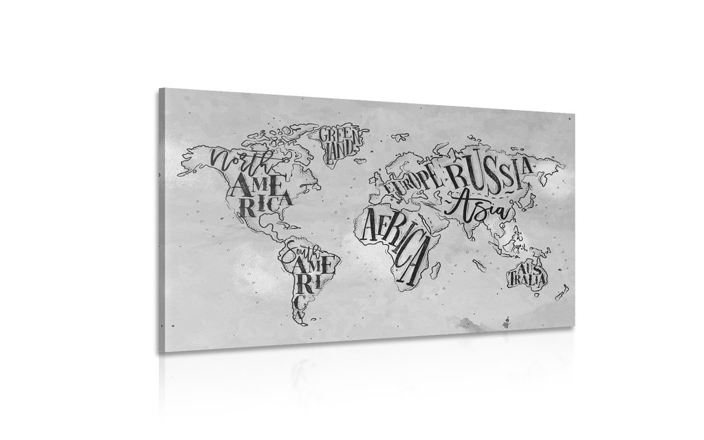 Obraz abstraktná mapa celého sveta v čiernobielom prevedení