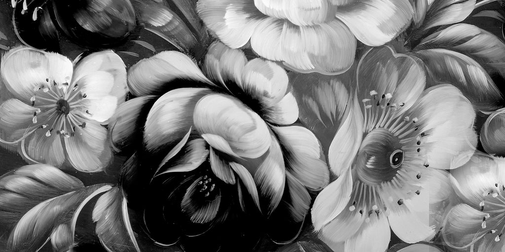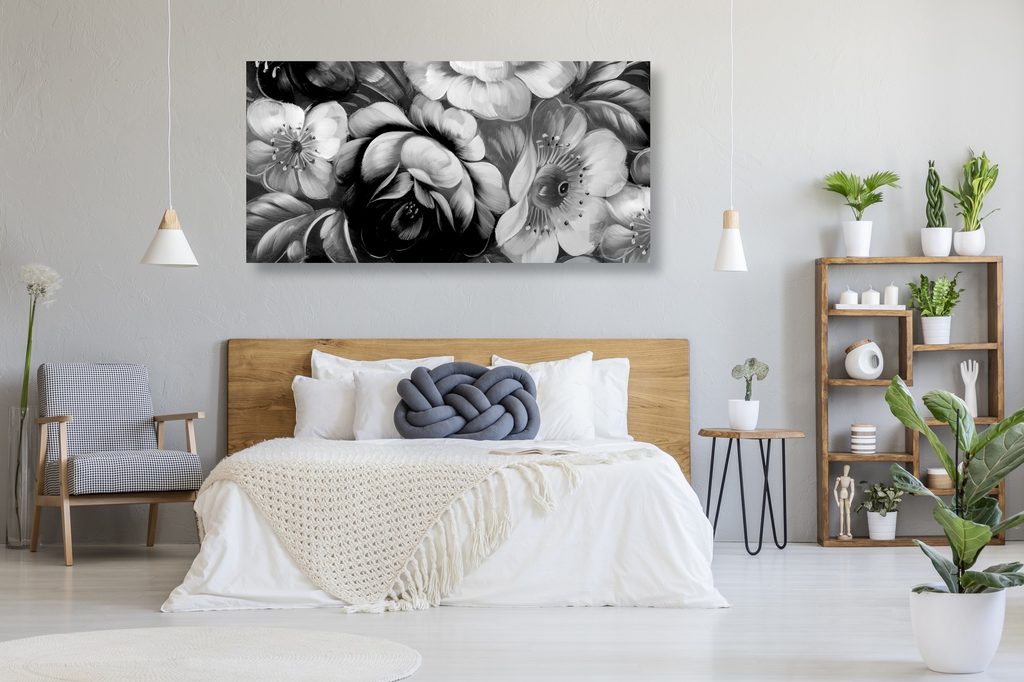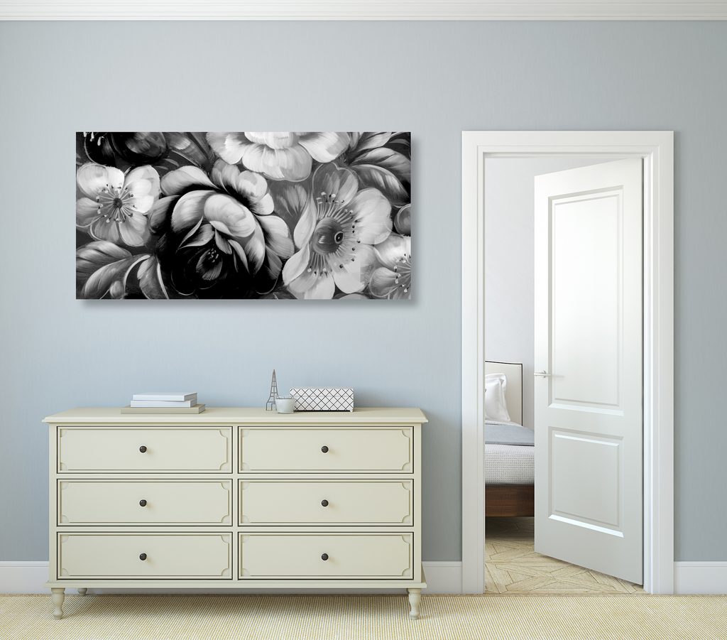 Obraz abstraktná umelecká maľba kvetín v čiernobielom prevedení