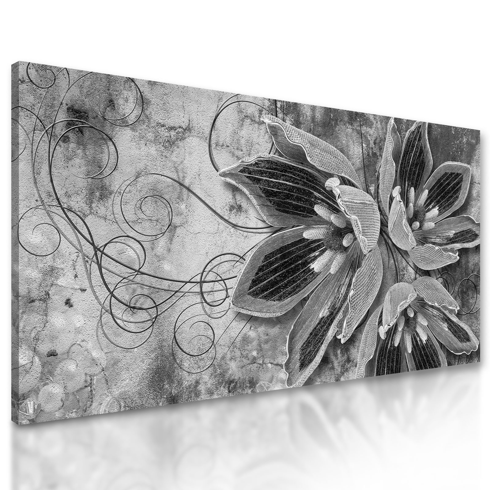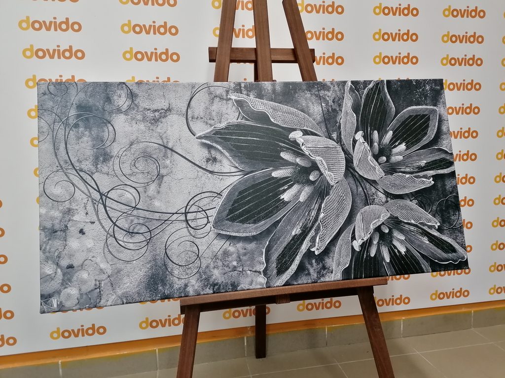 Obraz abstraktný kvet v čiernobielom prevedení