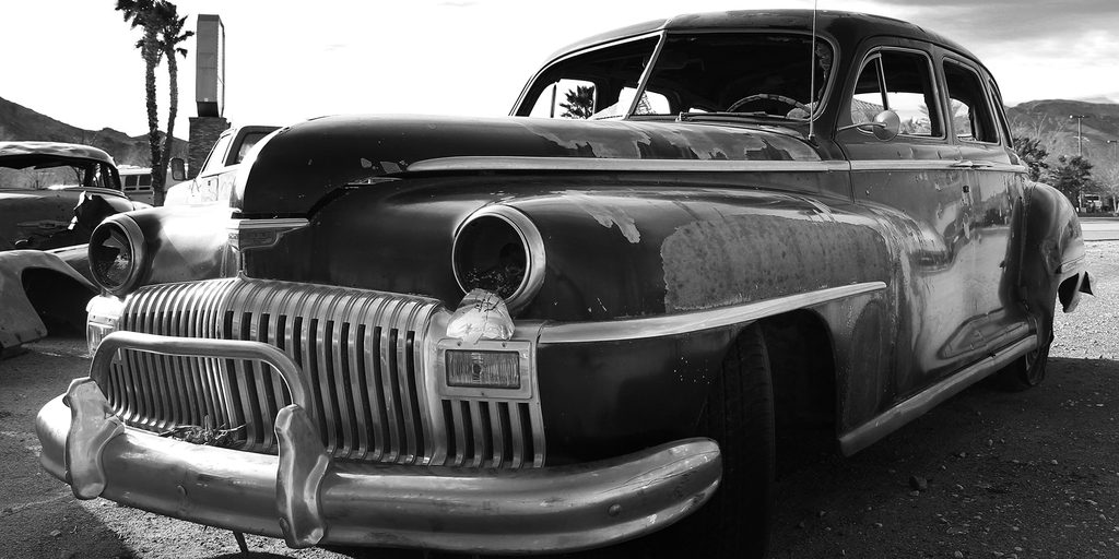 Obraz americký veterán na vrakovisku v čiernobielom prevedení