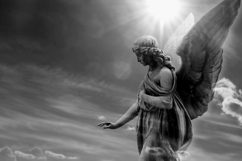 Obraz anjel strážny v čiernobielom prevedení