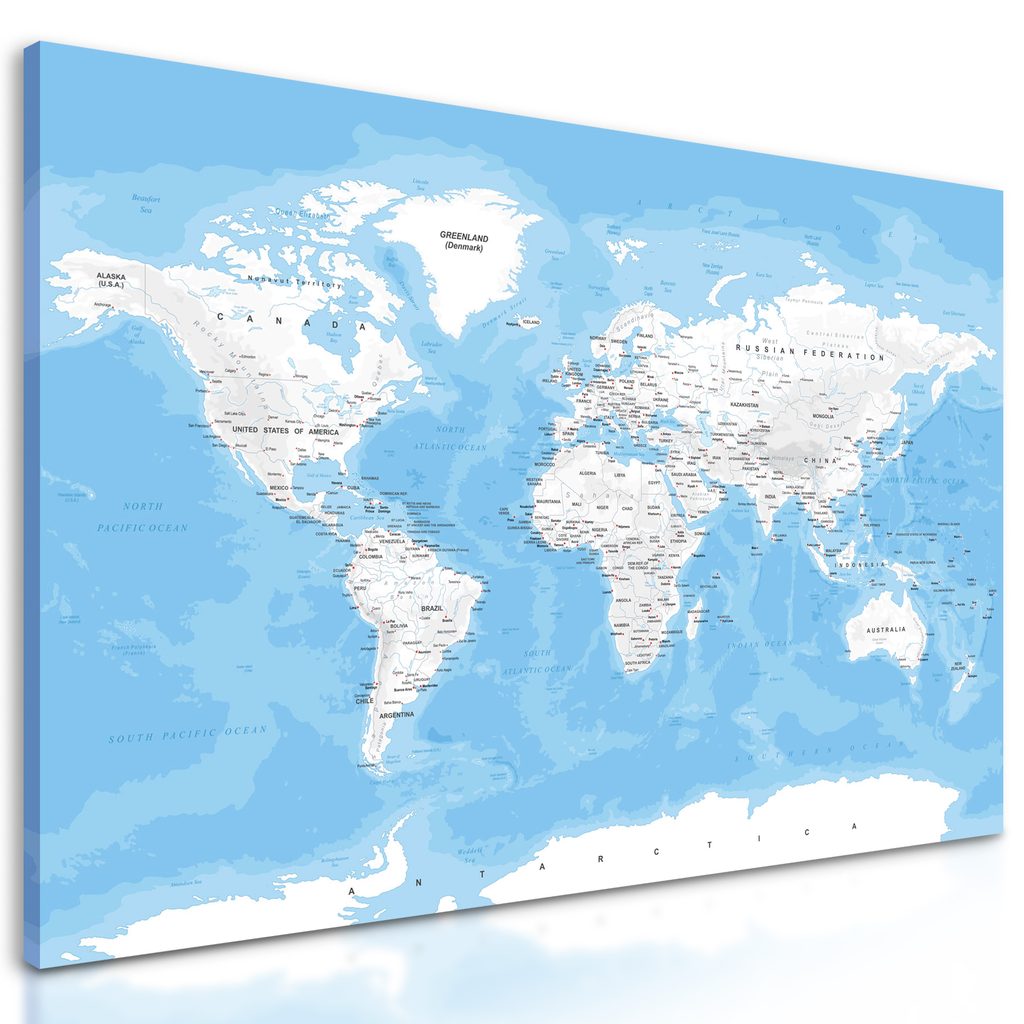 Obraz na korku mapa sveta v prehľadnom prevedení