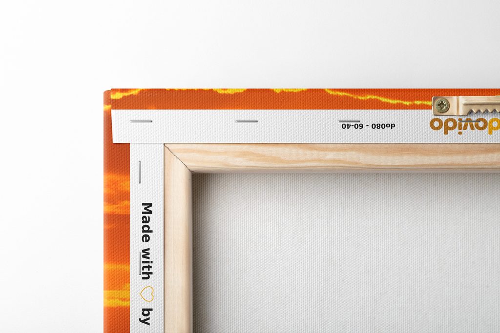 Keďže chceme, aby obraz na vašej stene vyzeral dokonalo, zameriavame sa na detaily. Preto je plátno dôkladne napnuté na rám, ktorý je z kvalitného dreva. Použitý rám je vyrábaný z rámarských líšt, ktoré sú vhodné na výrobu obrazov. Netreba zabudnúť ani na to, že na zadnej strane sú nahusto umiestnené spony. Spolu s obrazmi obdržíte 1 až 2 ks závesov, ktoré sú umiestené na zadnej strane, podľa toho, aký rozmer obrazu si zvolíte. Pre obrazy, ktorých šírka je nad 120 cm je na zosilnenie rámu vsadená drevená priečka.