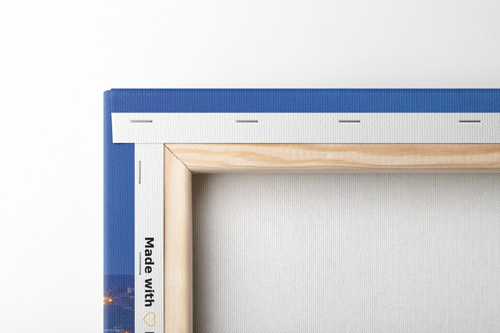 Keďže chceme, aby obraz na vašej stene vyzeral dokonalo, zameriavame sa na detaily. Preto je plátno dôkladne napnuté na rám, ktorý je z kvalitného dreva. Použitý rám je vyrábaný z rámarských líšt, ktoré sú vhodné na výrobu obrazov. Netreba zabudnúť ani na to, že na zadnej strane sú nahusto umiestnené spony. Spolu s obrazmi obdržíte 1 až 2 ks závesov, ktoré sú umiestené na zadnej strane, podľa toho, aký rozmer obrazu si zvolíte. Pre obrazy, ktorých šírka je nad 120 cm je na zosilnenie rámu vsadená drevená priečka.