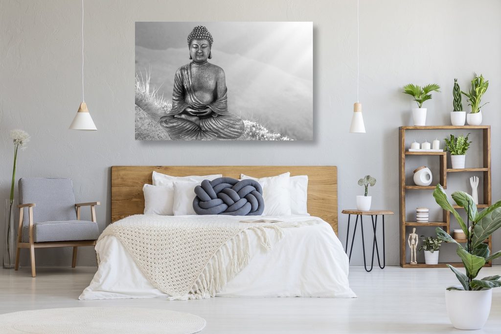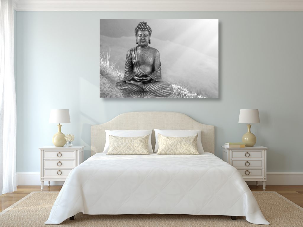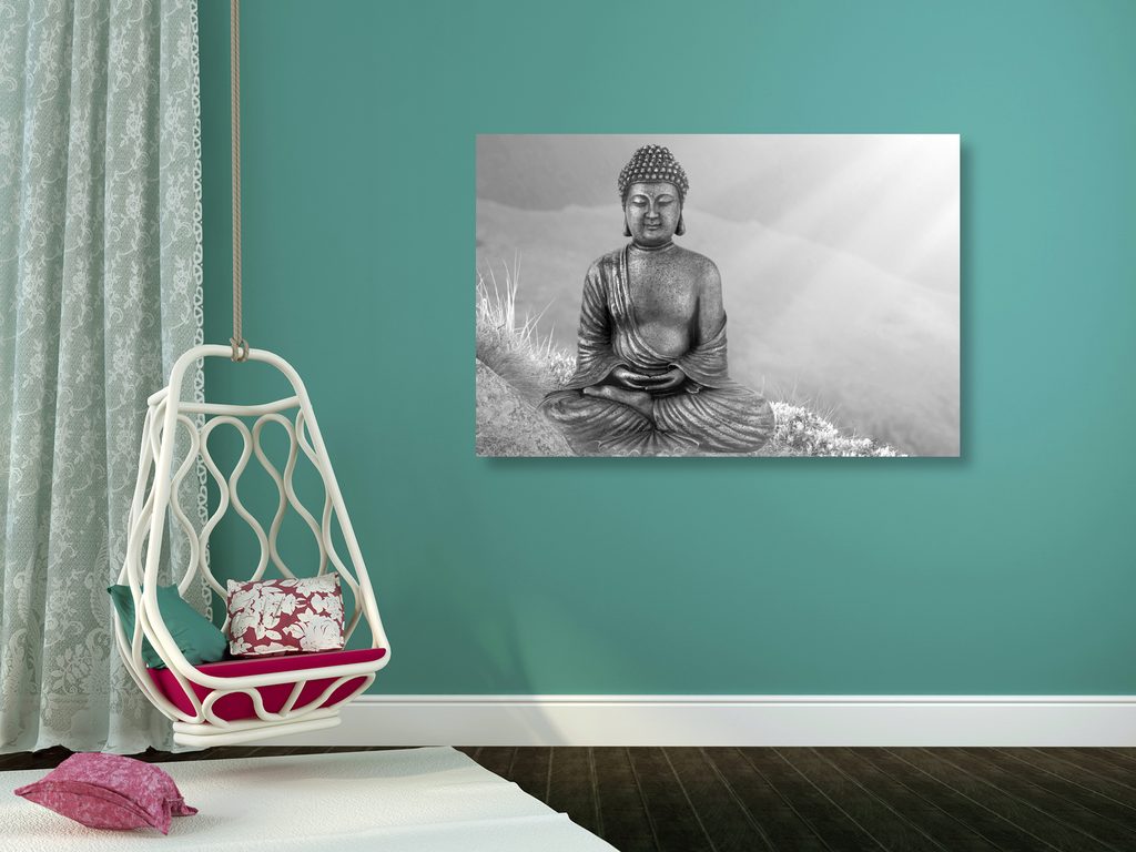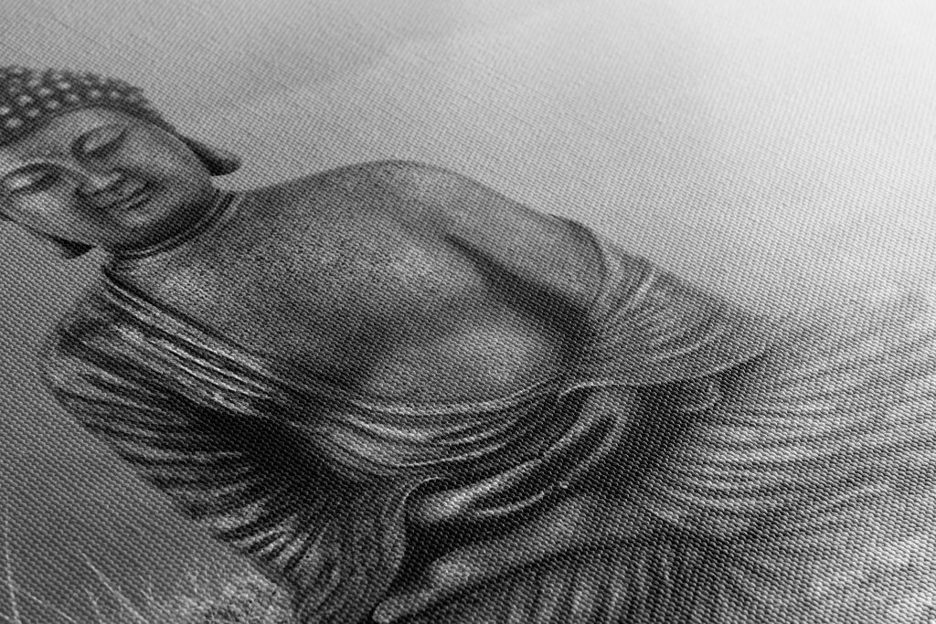 Obraz Budha na hore poznania v čiernobielom prevedení