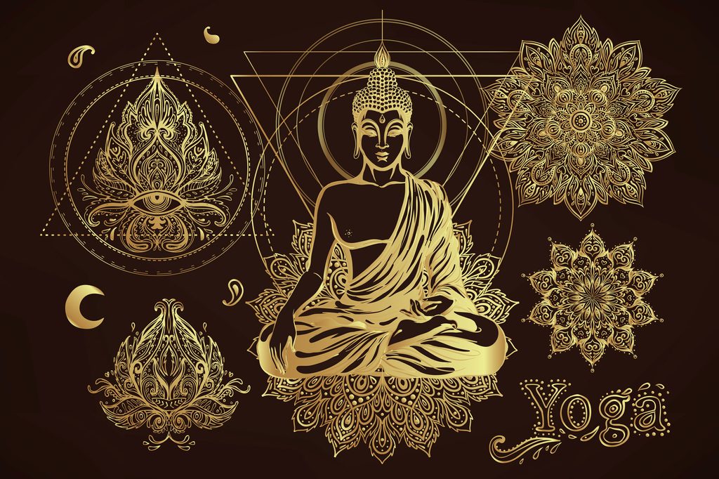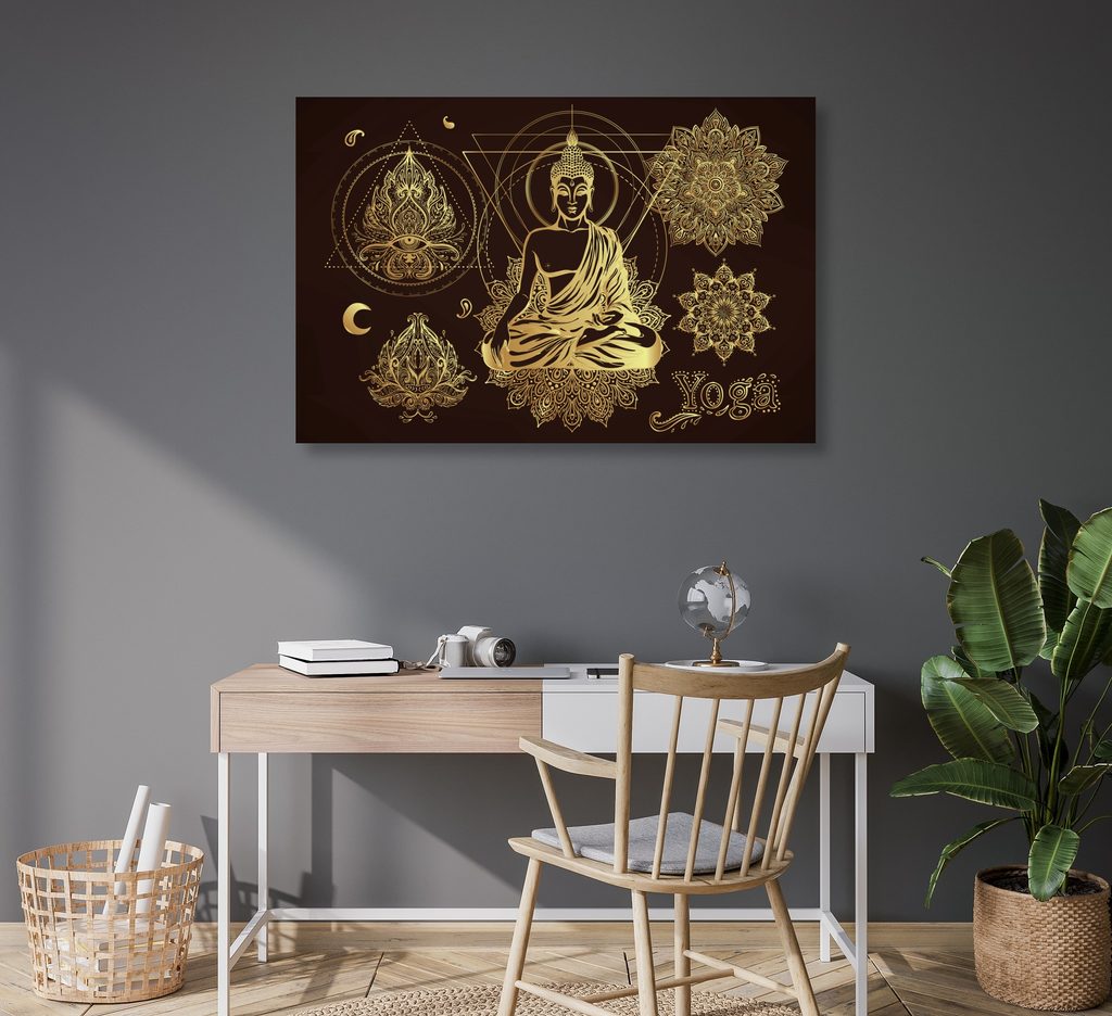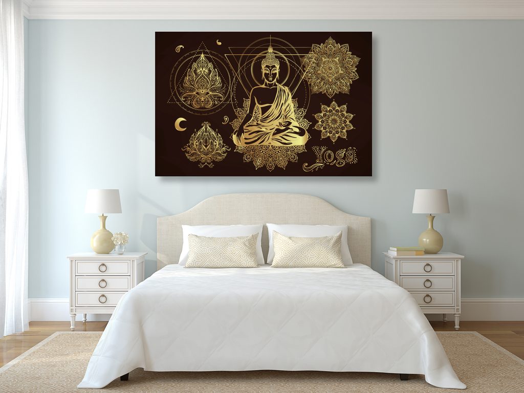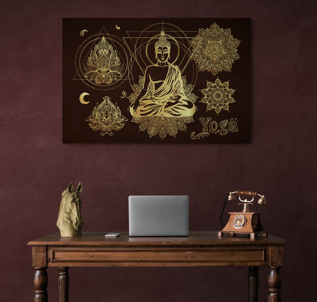 5-dielny obraz Budha na levandulovej lúke v čiernobielom prevedení