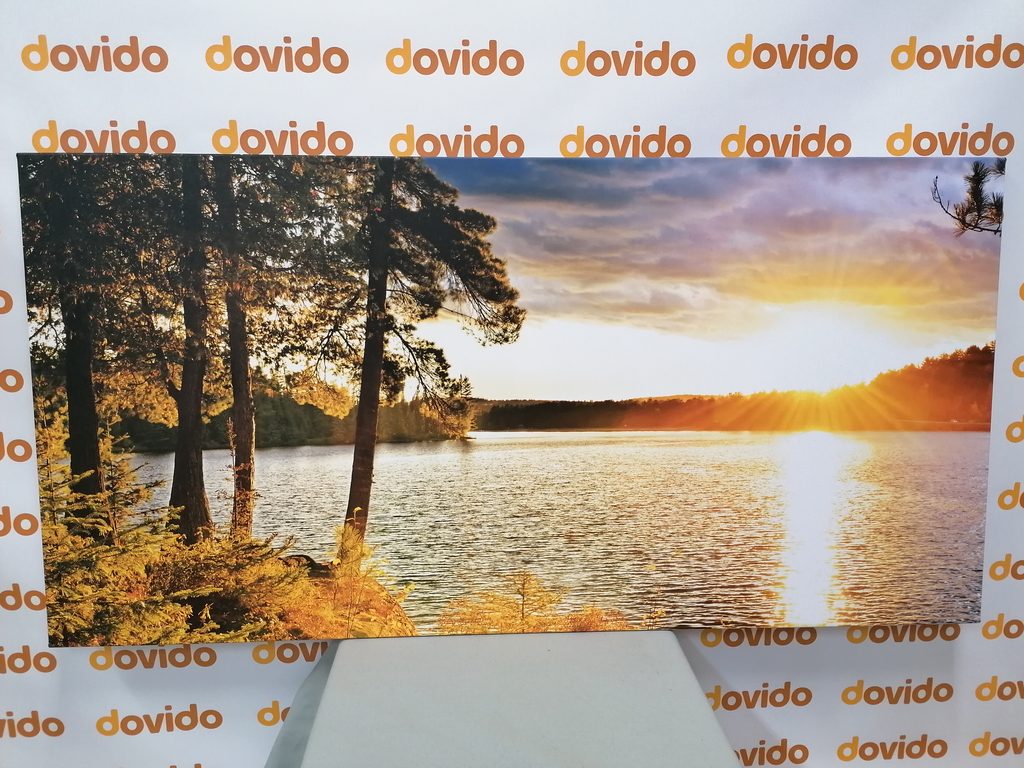 Obraz čaro zapadajúceho slnka pri jazere