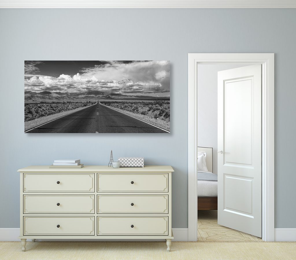 Obraz cesta pušťou v čiernobielom prevedení