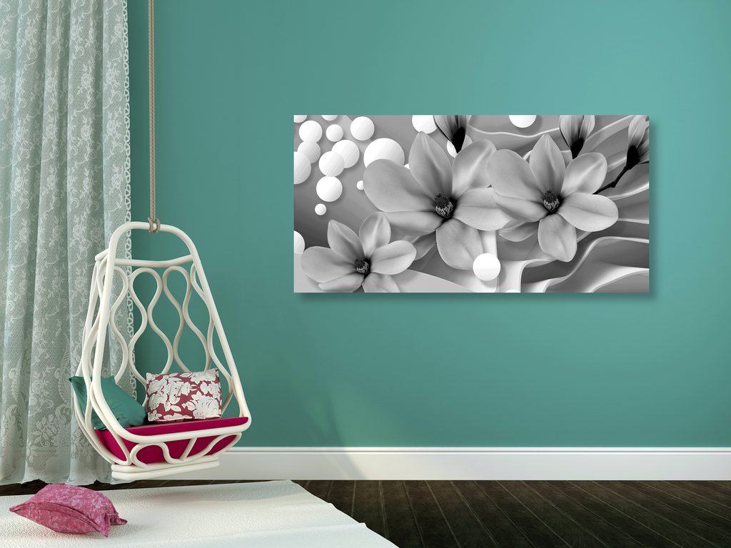5-dielny obraz kvety na zaujímavom pozadí v čiernobielom prevedení