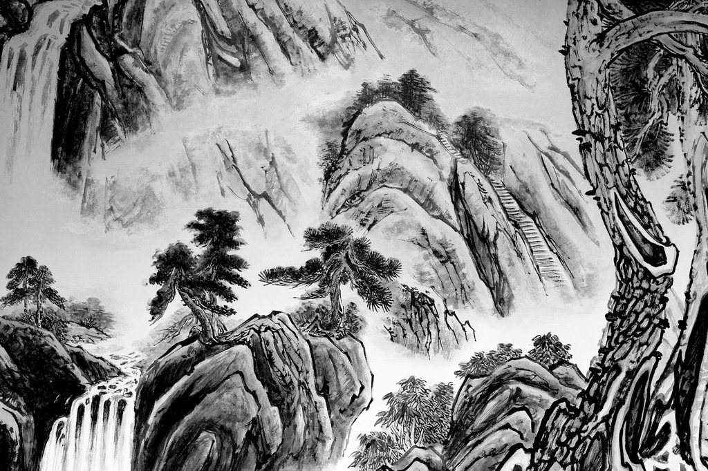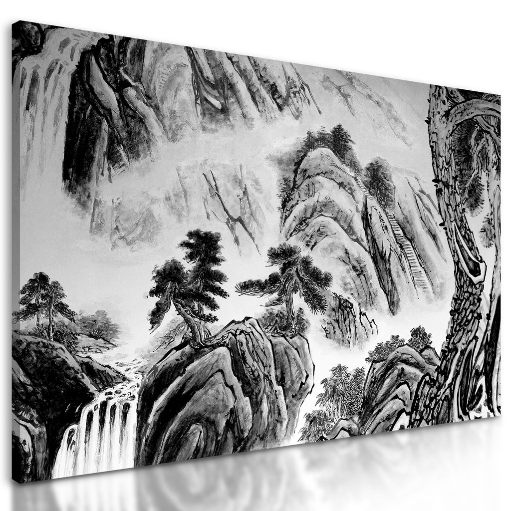 5-dielny obraz pleso v Tatrách v čiernobielom prevedení