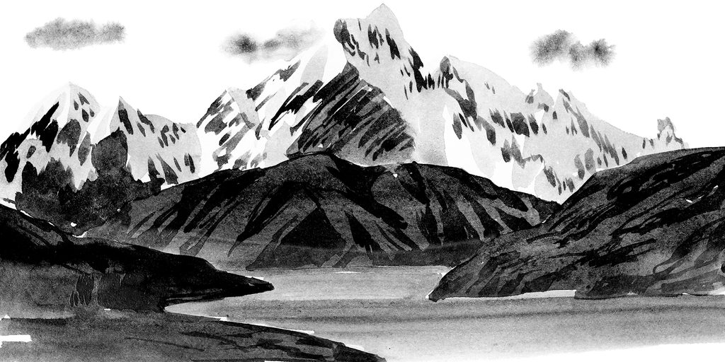 Obraz čiernobiela maľba rieky uprostred hôr