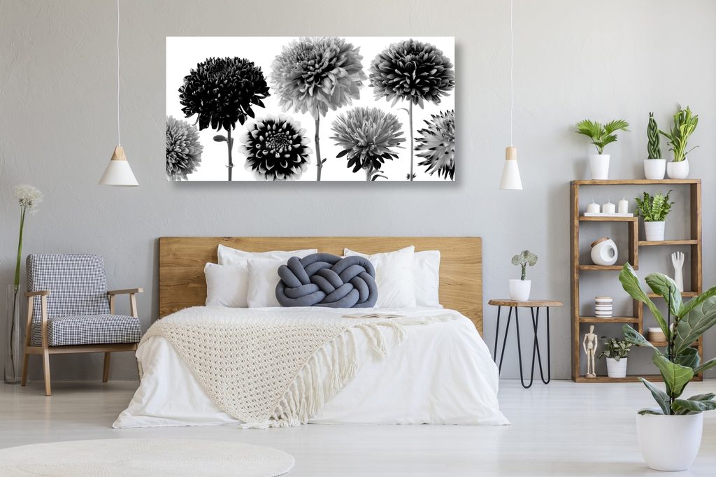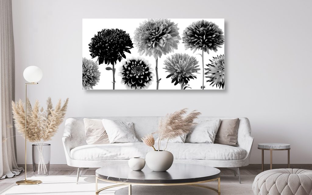 Obraz čiernobiele kvety dálie