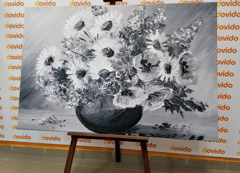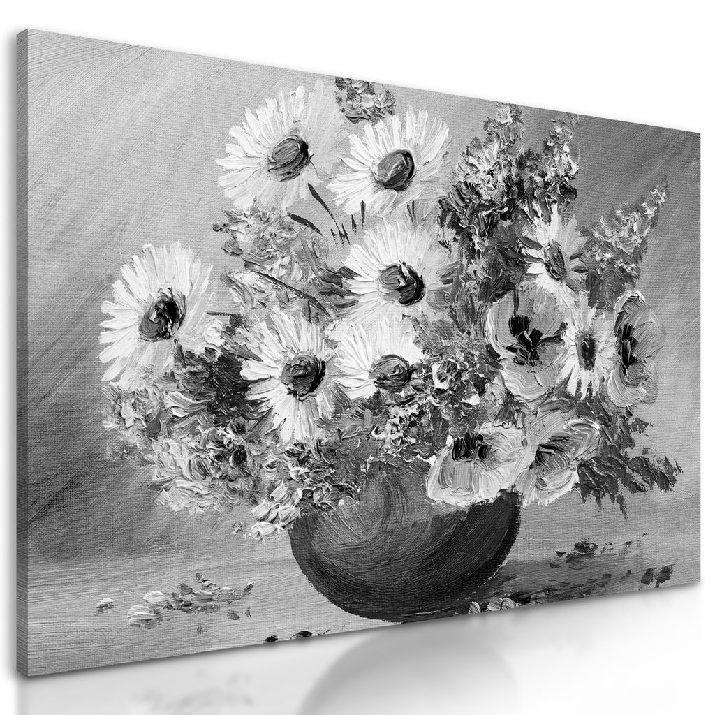 Obraz čiernobiele kvety vo vintage prevedení