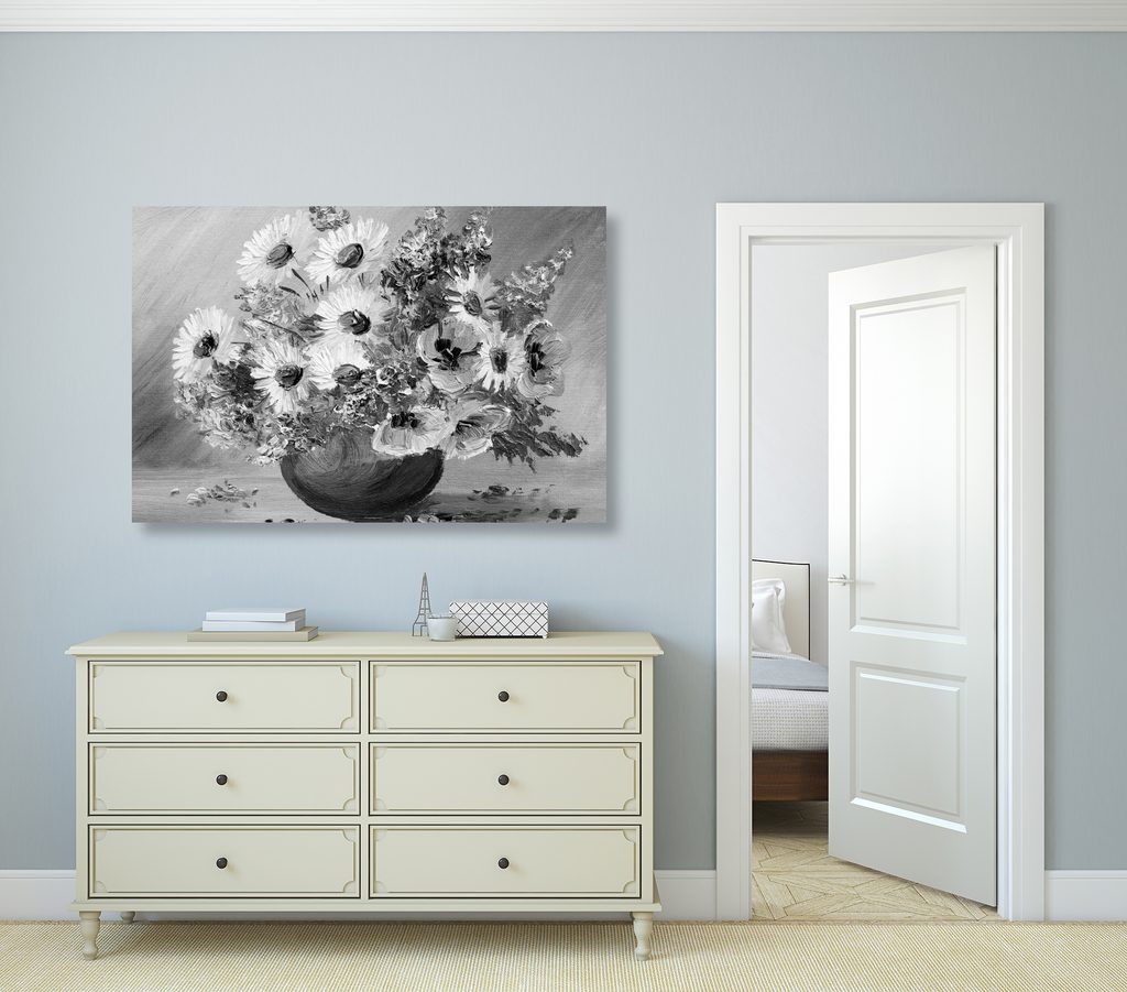 5-dielny obraz maľované pestrofarebné kvety v čiernobielom prevedení