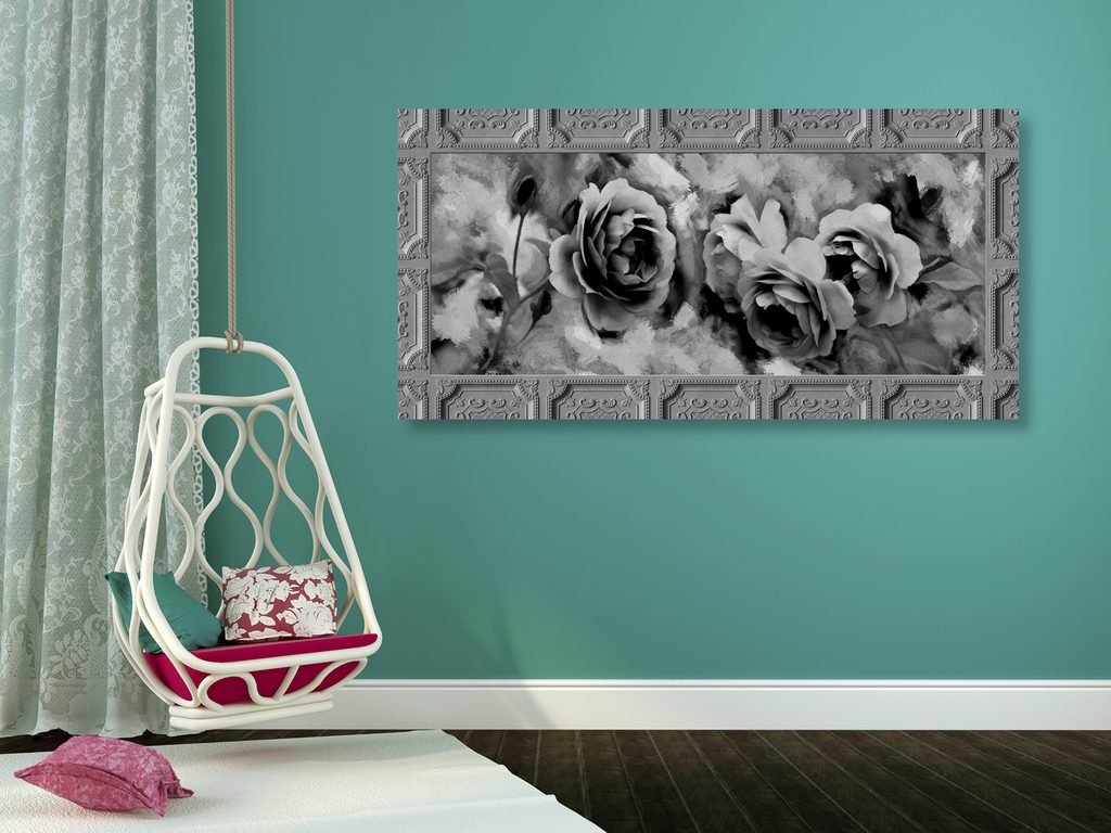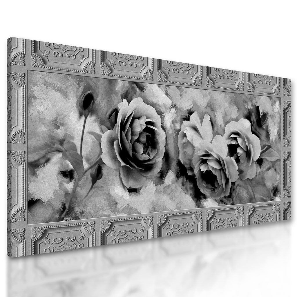 Obraz čiernobiele ruže v historickom prevedení