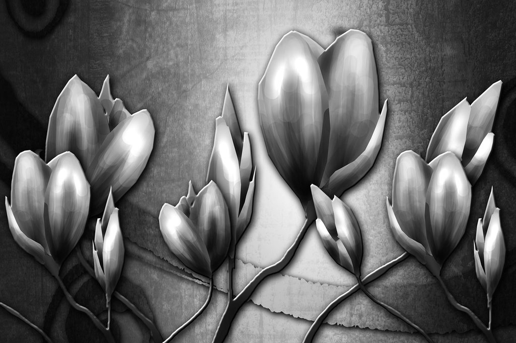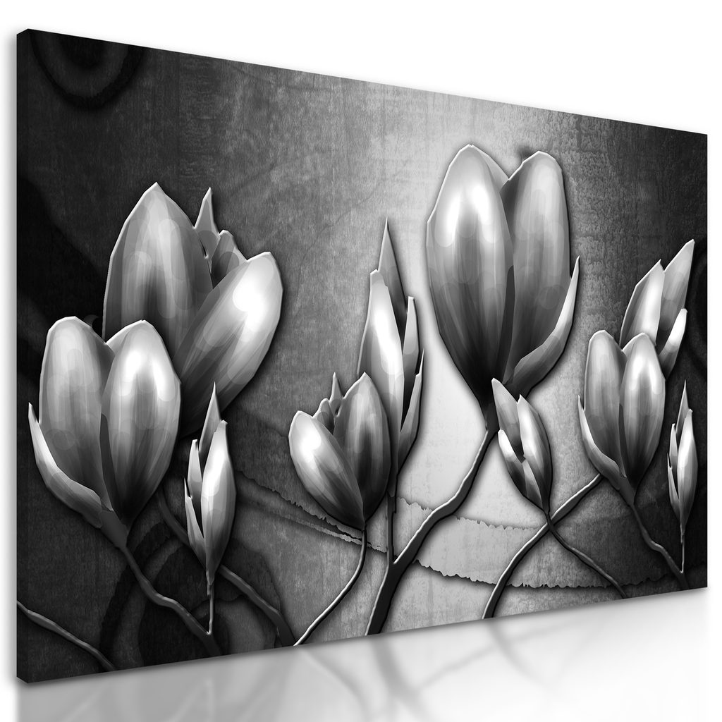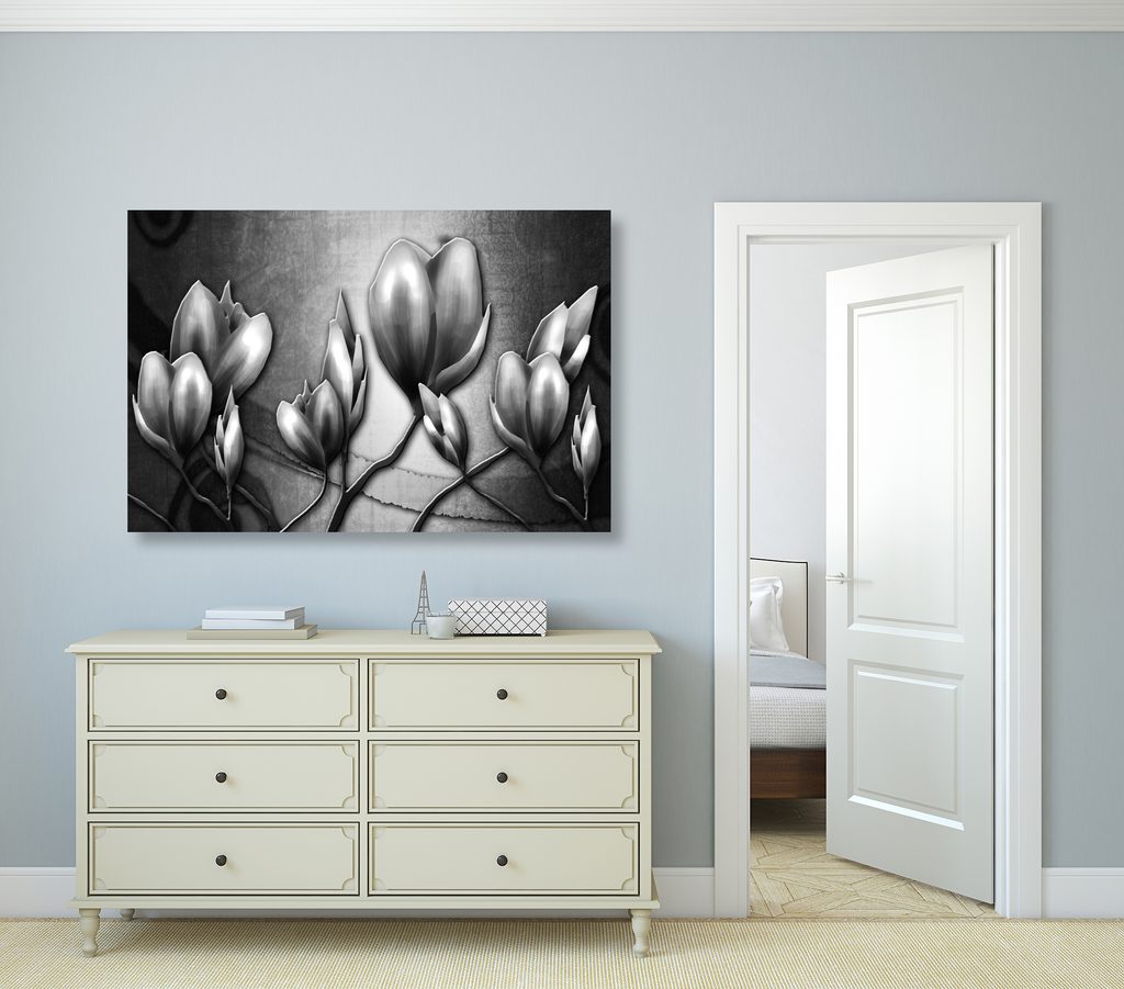 5-dielny obraz pôvabná kvetinová kompozícia v čiernobielom prevedení
