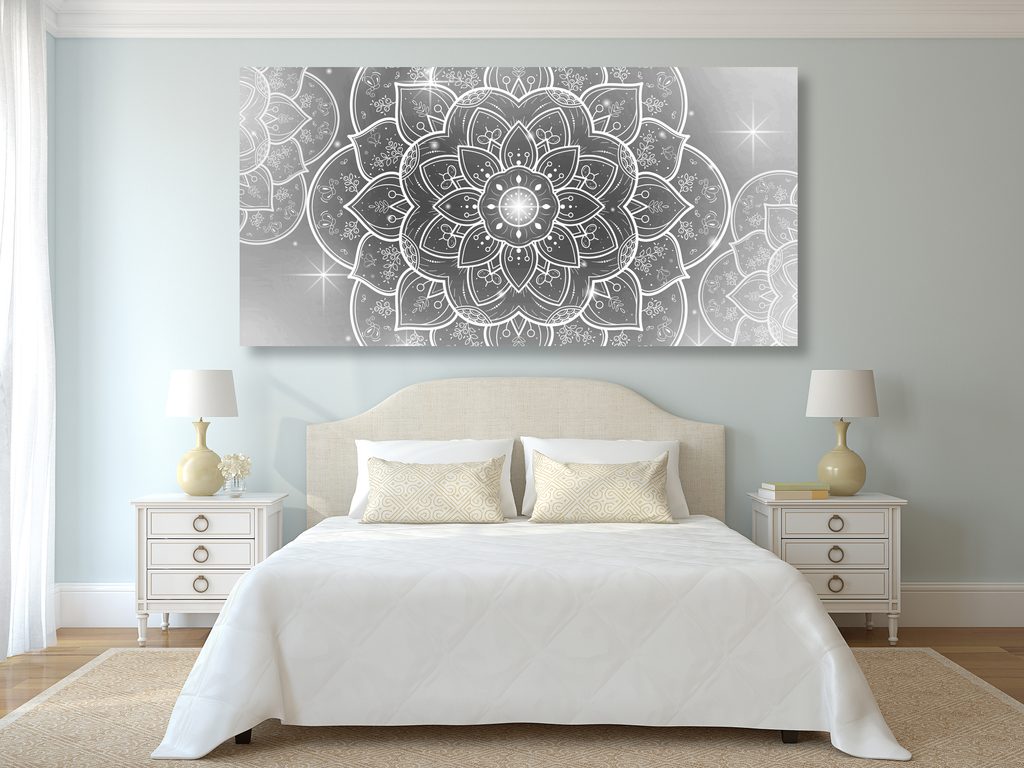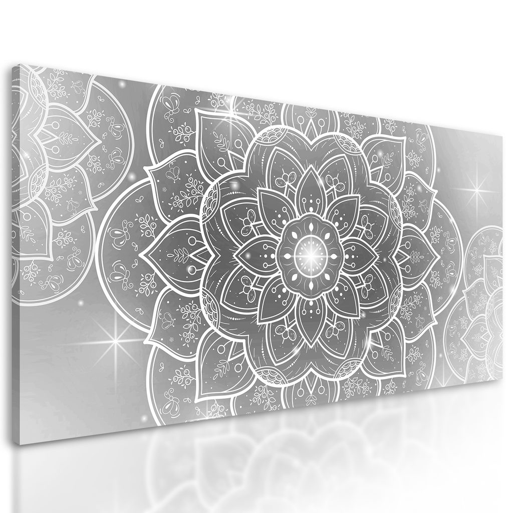 5-dielny obraz zaujímavá Mandala v čiernobielych farbách