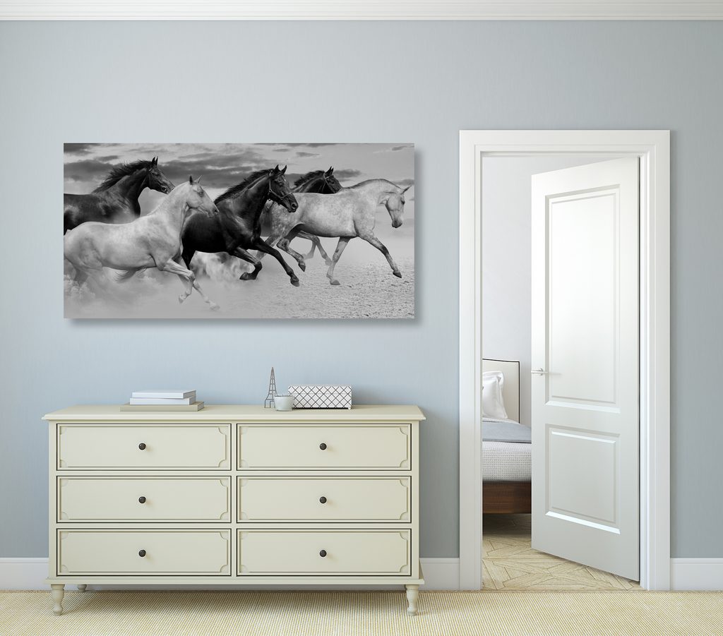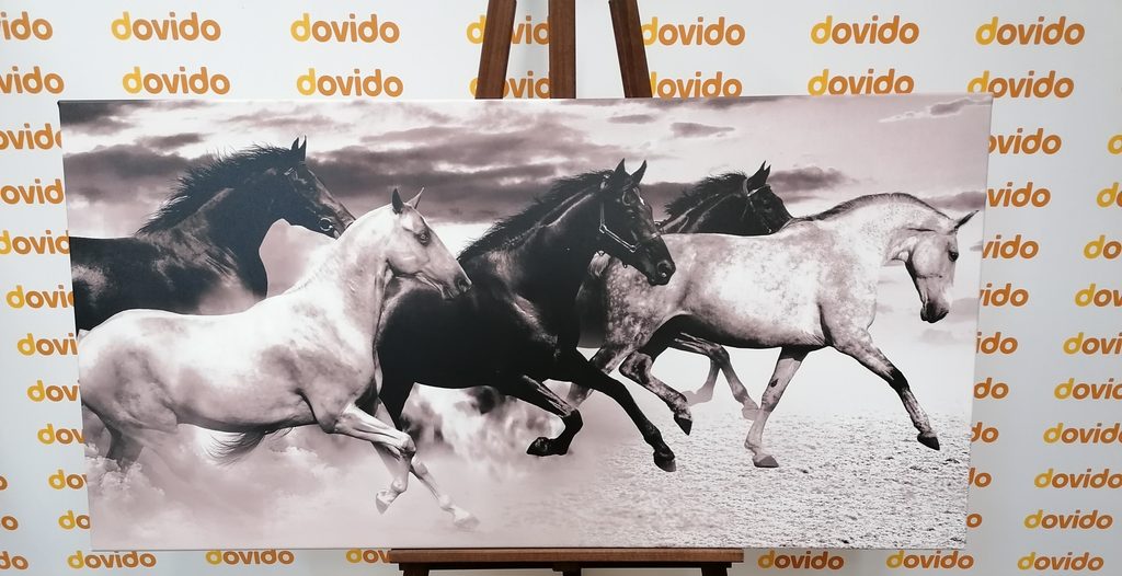 5-dielny obraz kvety na zaujímavom pozadí v čiernobielom prevedení