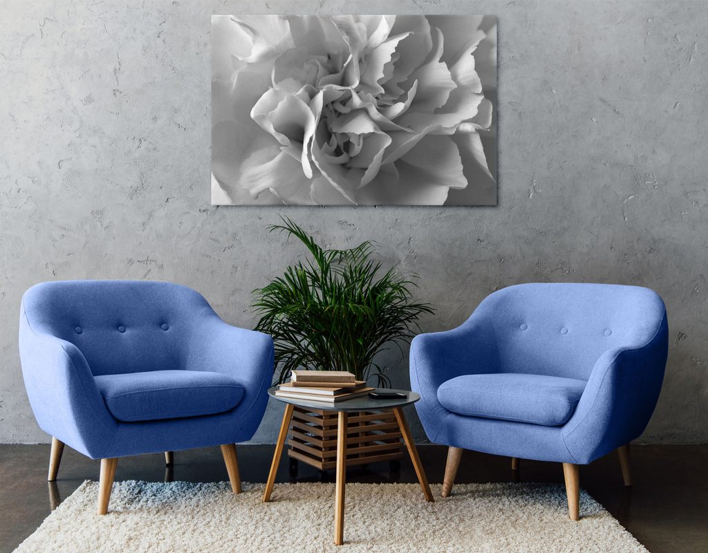 Obraz detail na kvet karafiátu v čiernobielom prevedení