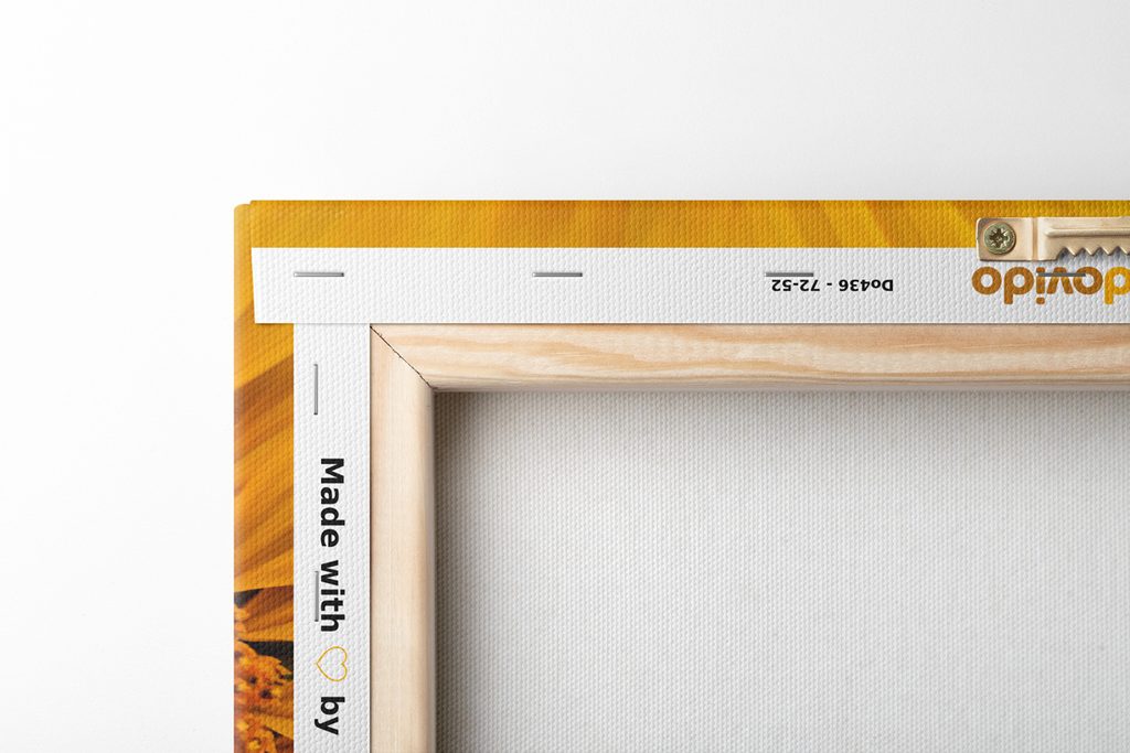 Keďže chceme, aby obraz na vašej stene vyzeral dokonalo, zameriavame sa na detaily. Preto je plátno dôkladne napnuté na rám, ktorý je z kvalitného dreva. Použitý rám je vyrábaný z rámarských líšt, ktoré sú vhodné na výrobu obrazov. Netreba zabudnúť ani na to, že na zadnej strane sú nahusto umiestnené spony. Spolu s obrazmi obdržíte 1 až 2 ks závesov, ktoré sú umiestené na zadnej strane, podľa toho, aký rozmer obrazu si zvolíte. Pre obrazy, ktorých šírka je nad 120 cm je na zosilnenie rámu vsadená drevená priečka.