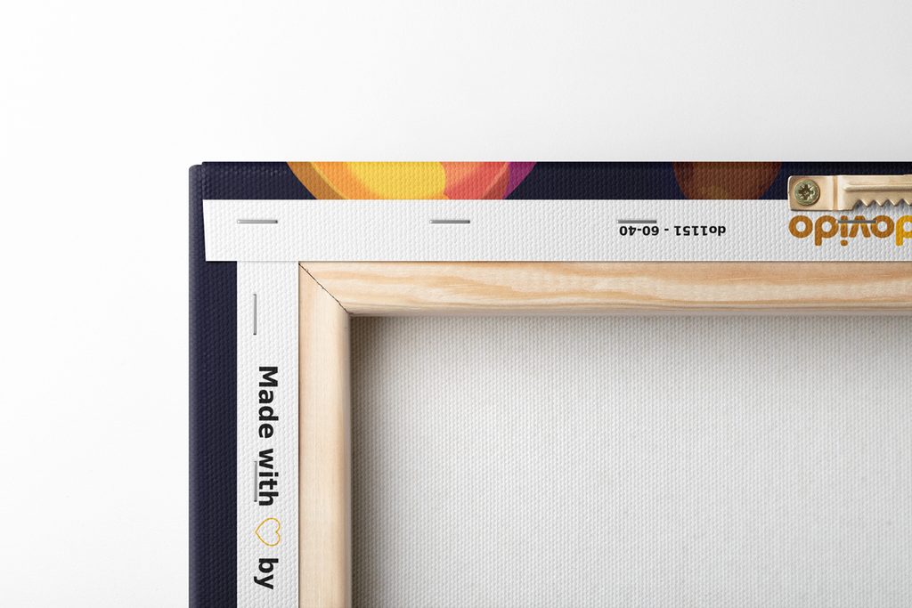 Keďže chceme, aby obraz na vašej stene vyzeral dokonalo, zameriavame sa na detaily. Preto je plátno dôkladne napnuté na rám, ktorý je z kvalitného dreva. Použitý rám je vyrábaný z rámarských líšt, ktoré sú vhodné na výrobu obrazov. Netreba zabudnúť ani na to, že na zadnej strane sú nahusto umiestnené spony. Spolu s obrazmi obdržíte 1 až 2 ks závesov, ktoré sú umiestené na zadnej strane, podľa toho, aký rozmer obrazu si zvolíte. Pre obrazy, ktorých šírka je nad 120 cm je na zosilnenie rámu vsadená drevená priečka.