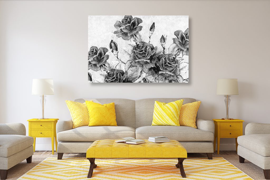 Obraz divé ruže v čiernobielom prevedení