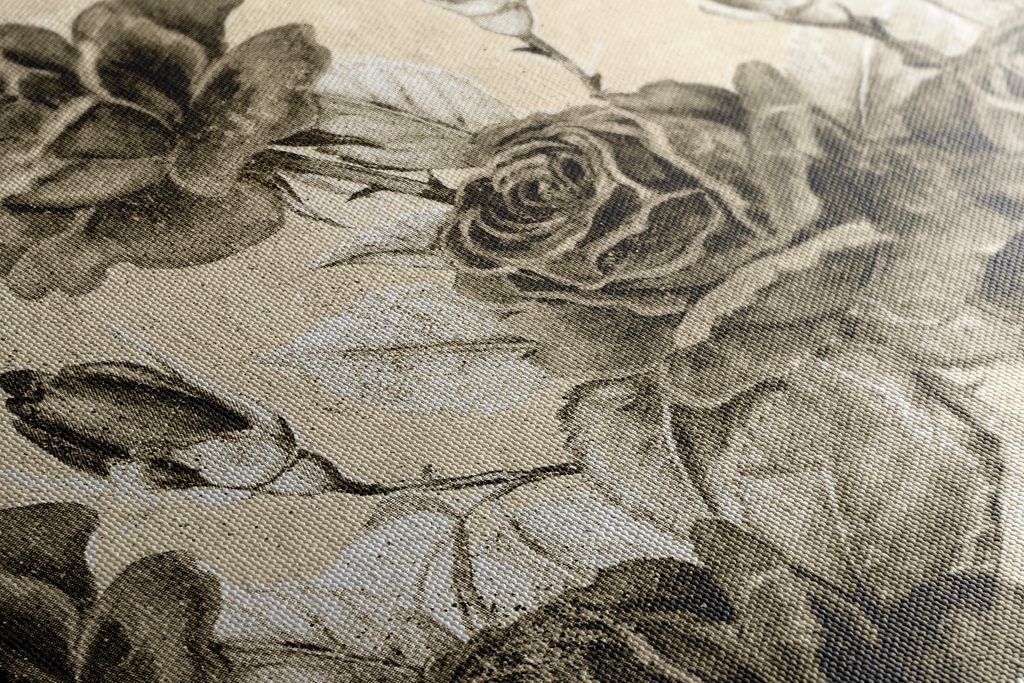 5-dielny obraz čiernobiele luxusné kvety na bronzovom pozadí