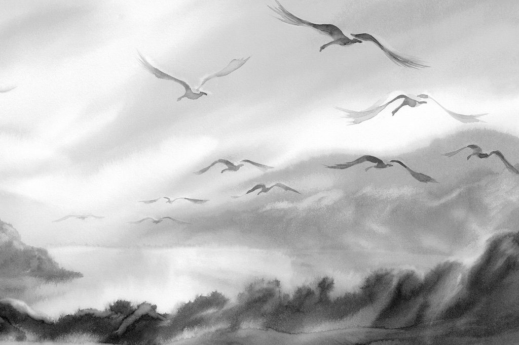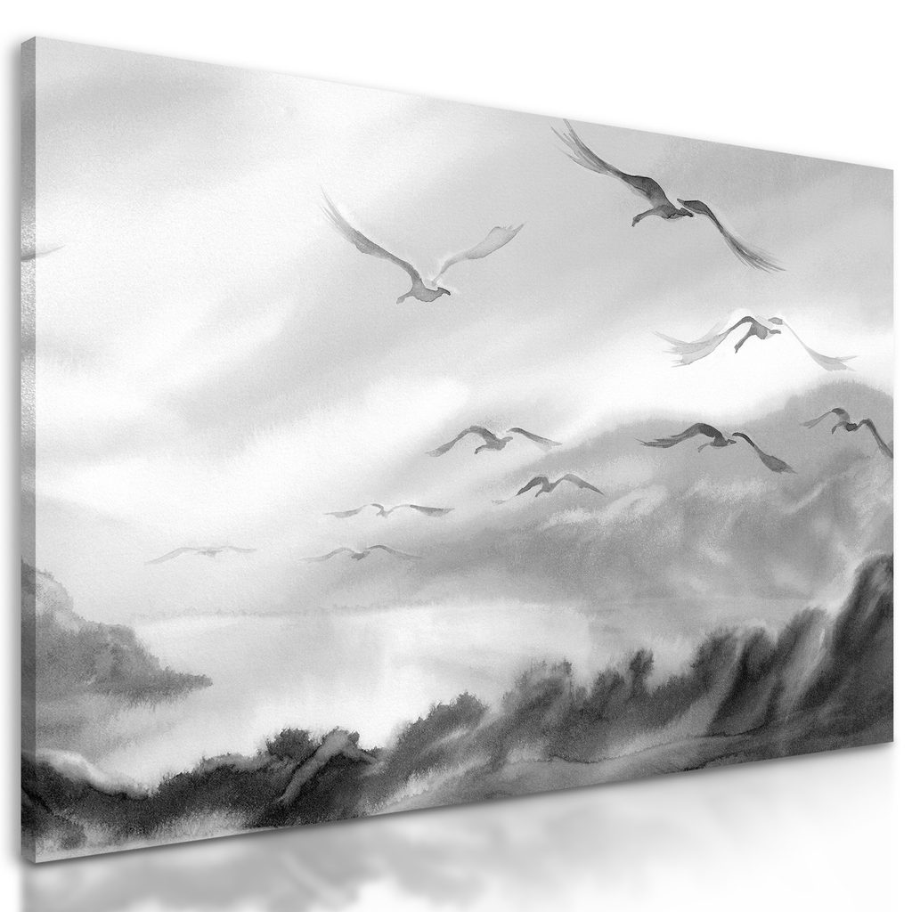 5-dielny obraz divoké čajky v čiernobielom prevedení
