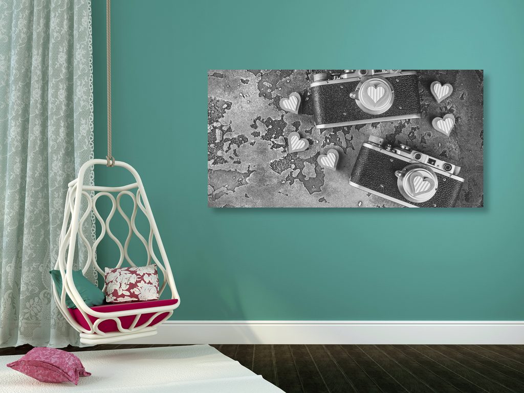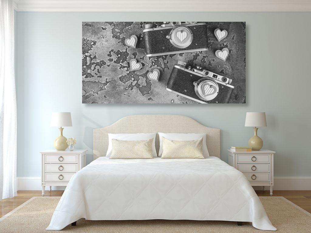 Obraz dva historické fotoaparáty v čiernobielom prevedení