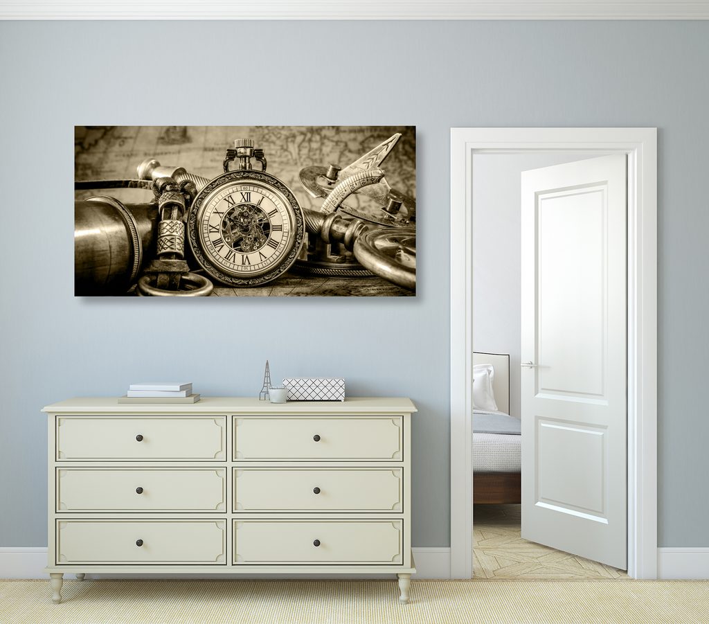 Obraz historické luxusné hodinky v sépiovom prevedení
