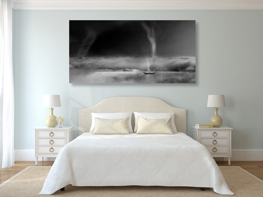Obraz polárna žiara v čiernobielom prevedení