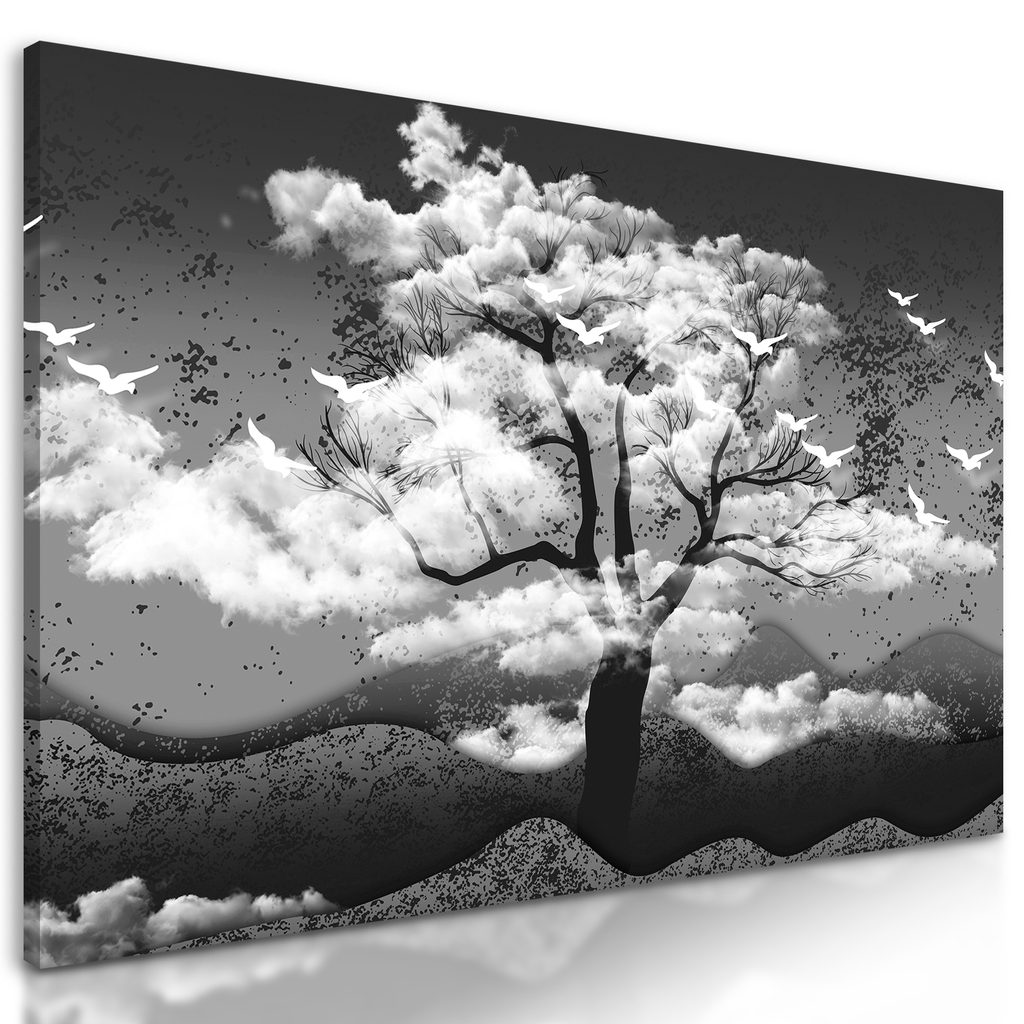 Obraz japonský strom v čiernobielom prevedení