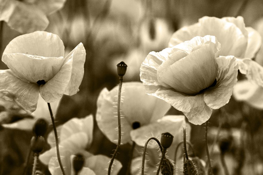 5-dielny obraz divý tulipán vo vintage štýle v čiernobielom prevedení
