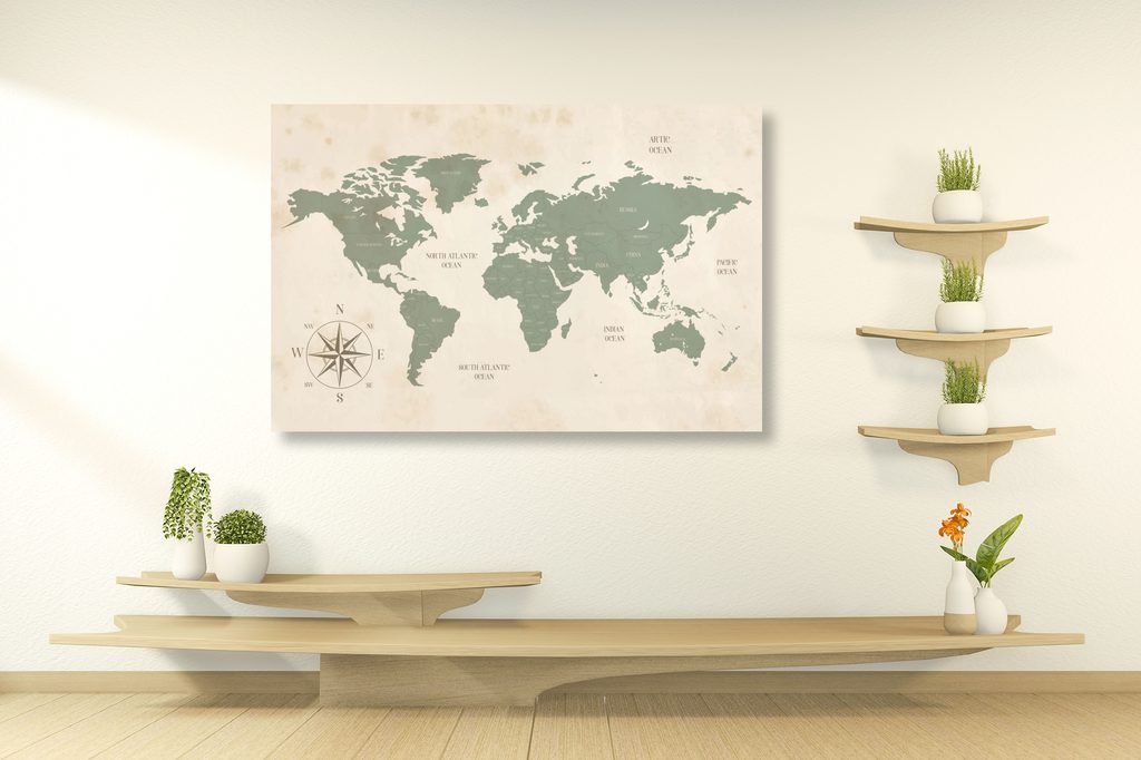 5-dielny obraz mapa sveta so starými obchodnými cestami