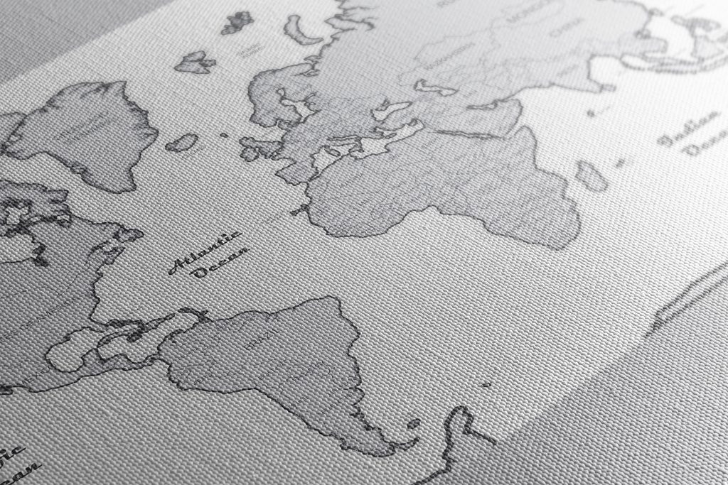 Obraz jemná mapa v čiernobielom prevedení