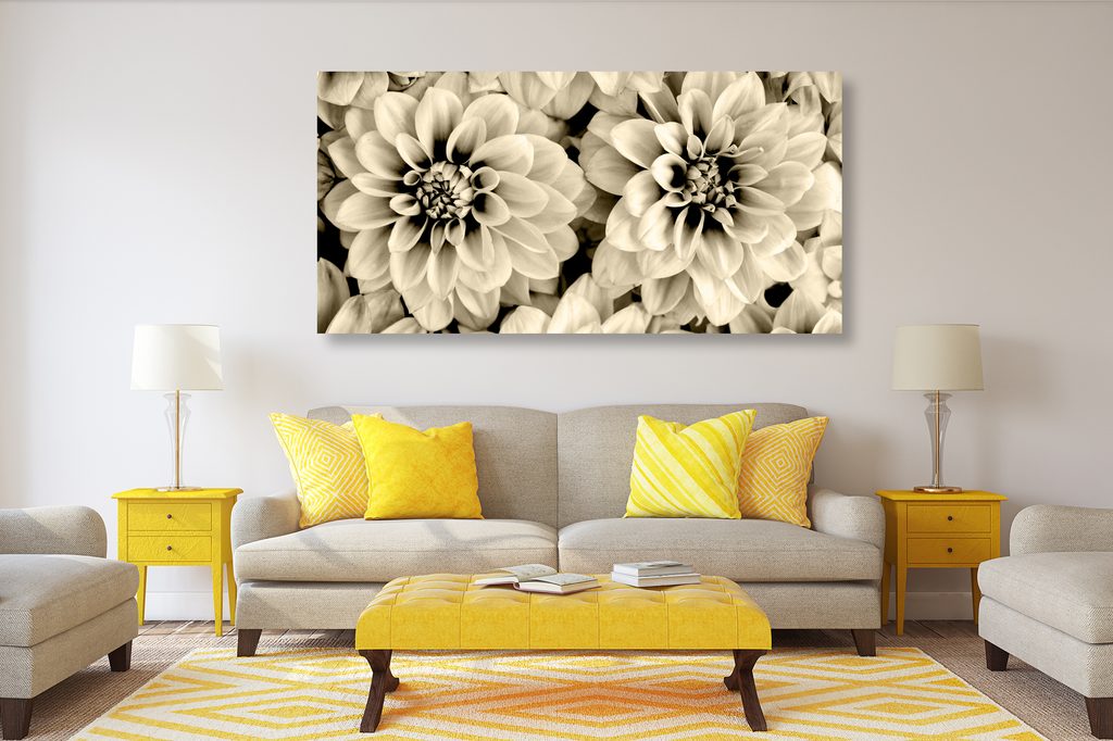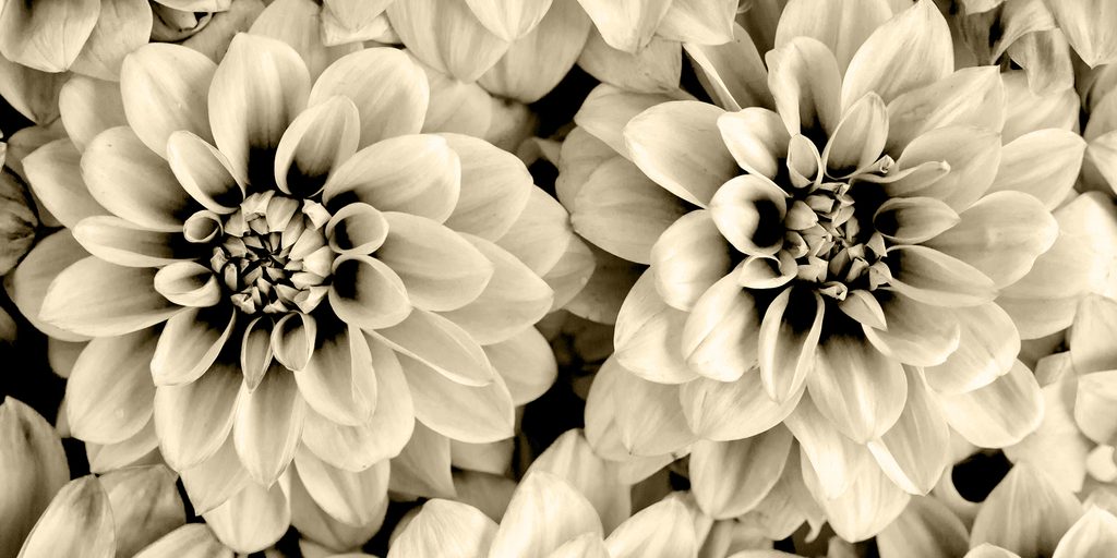 Obraz jemné rozkvitnuté dálie v sépiovom prevedení
