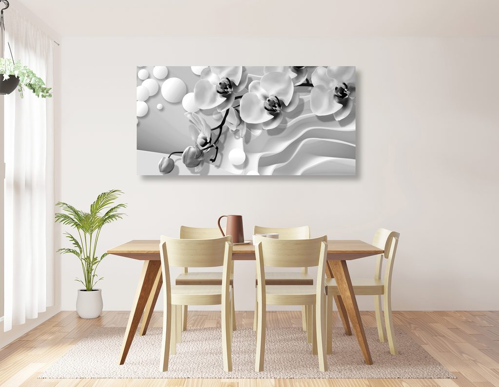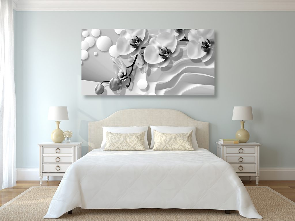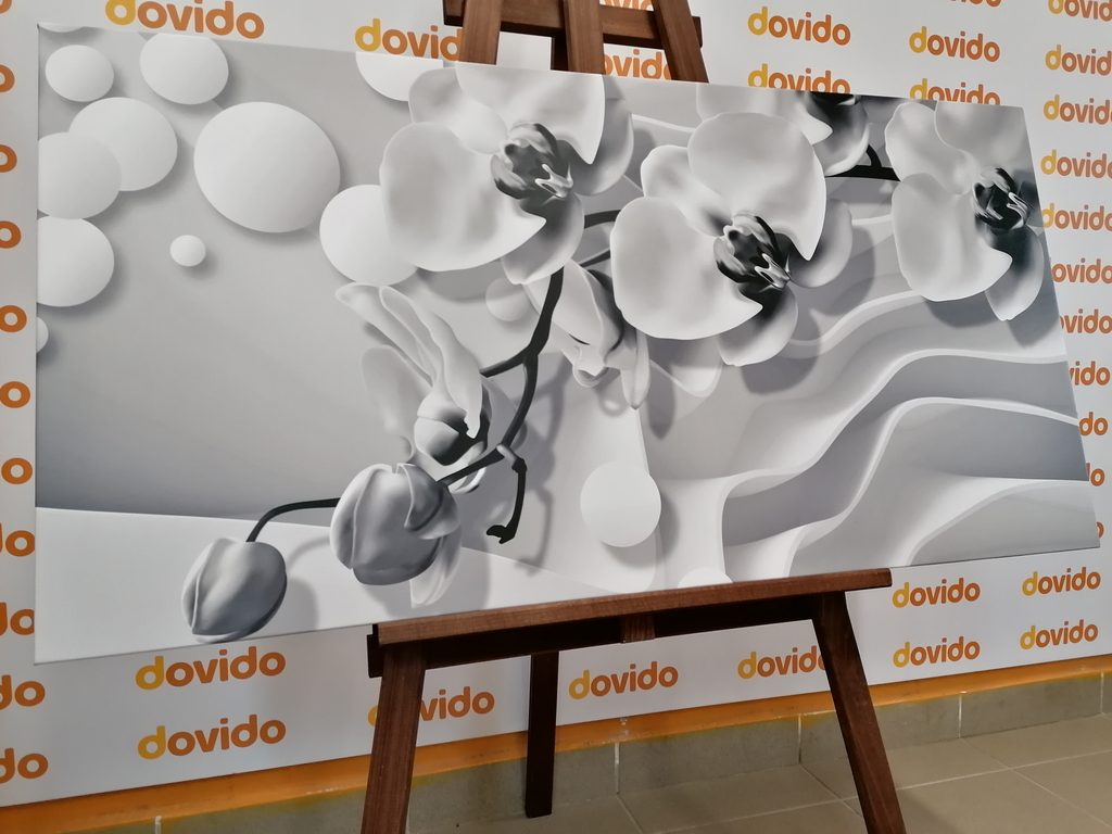 Obraz jemné znázornenie orchidei v čiernobielom prevedení