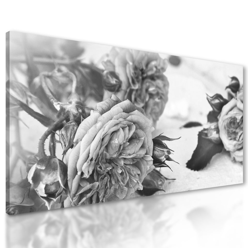 Obraz jemnosť nádherných ruží v čiernobielom prevedení