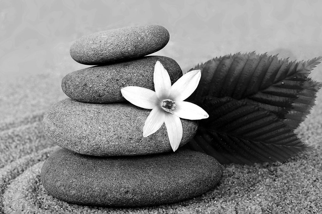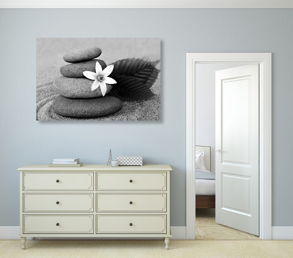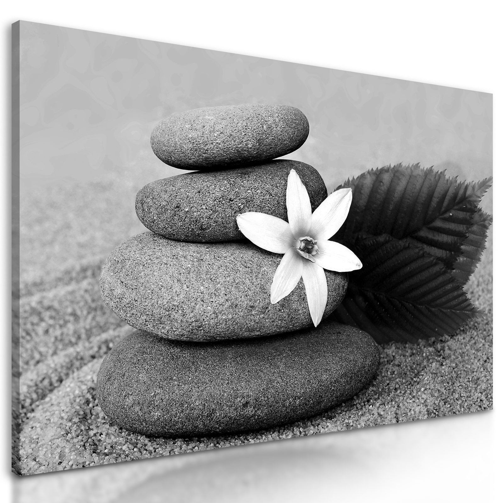 Obraz kamene na pieskovej pláži v čiernobielom prevedení