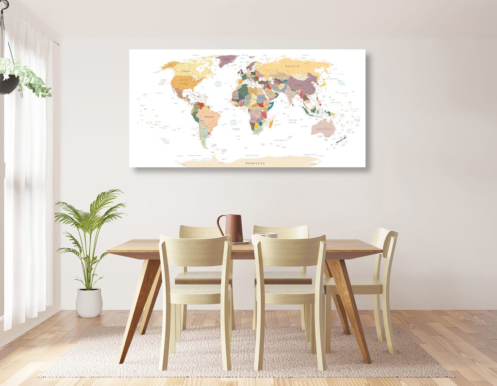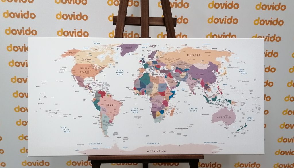 Obraz na korku čiernobiela mapa sveta s dreveným pozadím