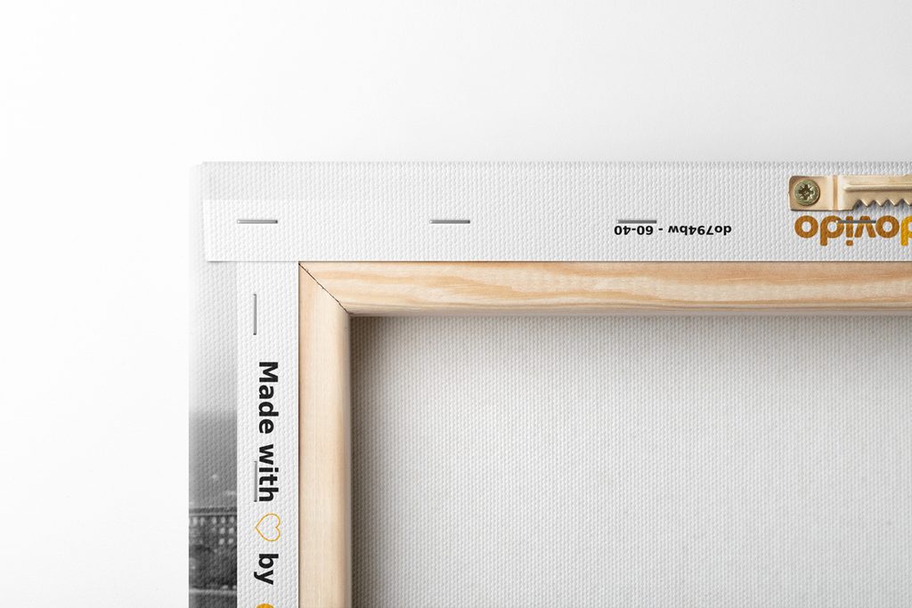 Keďže chceme, aby obraz na vašej stene vyzeral dokonalo, zameriavame sa na detaily. Preto je plátno dôkladne napnuté na rám, ktorý je z kvalitného dreva. Použitý rám je vyrábaný z rámarských líšt, ktoré sú vhodné na výrobu obrazov. Netreba zabudnúť ani na to, že na zadnej strane sú nahusto umiestnené spony. Spolu s obrazmi obdržíte 1 až 2 ks závesov, ktoré sú umiestené na zadnej strane, podľa toho, aký rozmer obrazu si zvolíte. Pre obrazy, ktorých šírka je nad 120 cm je na zosilnenie rámu vsadená drevená priečka.