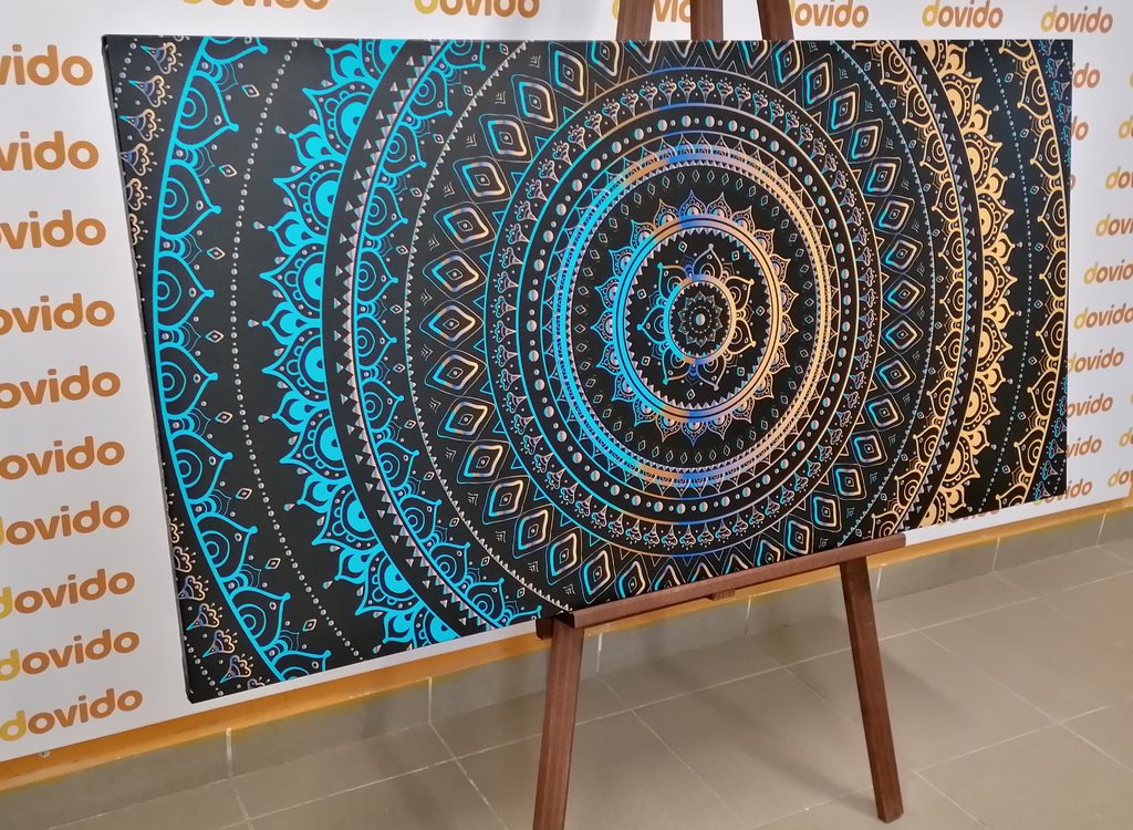5-dielny obraz čiernobiela Mandala v štýle kvetov